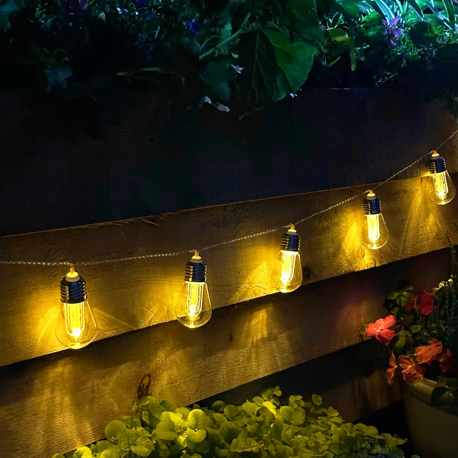 Create an inviting atmosphere with 10 warm white edison bulb outdoor lights. Enjoy up to 60 days of use per 3x AA battery set and conserve energy with the 8 multi-function settings. Each bulb features a drainage hole for 365 day outdoor use and a timer setting for 6 hours of light every night. Enjoy a bright, inviting space with these outstanding lights.