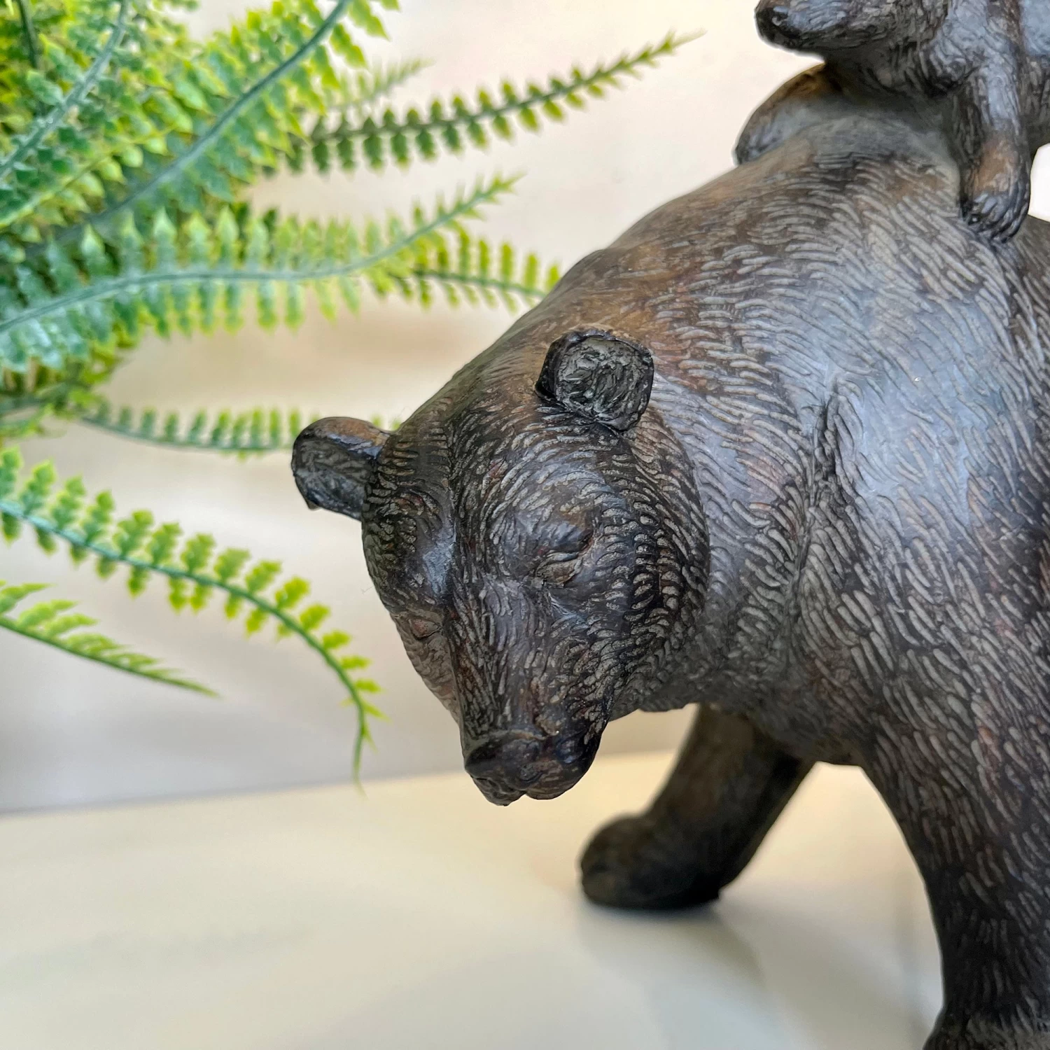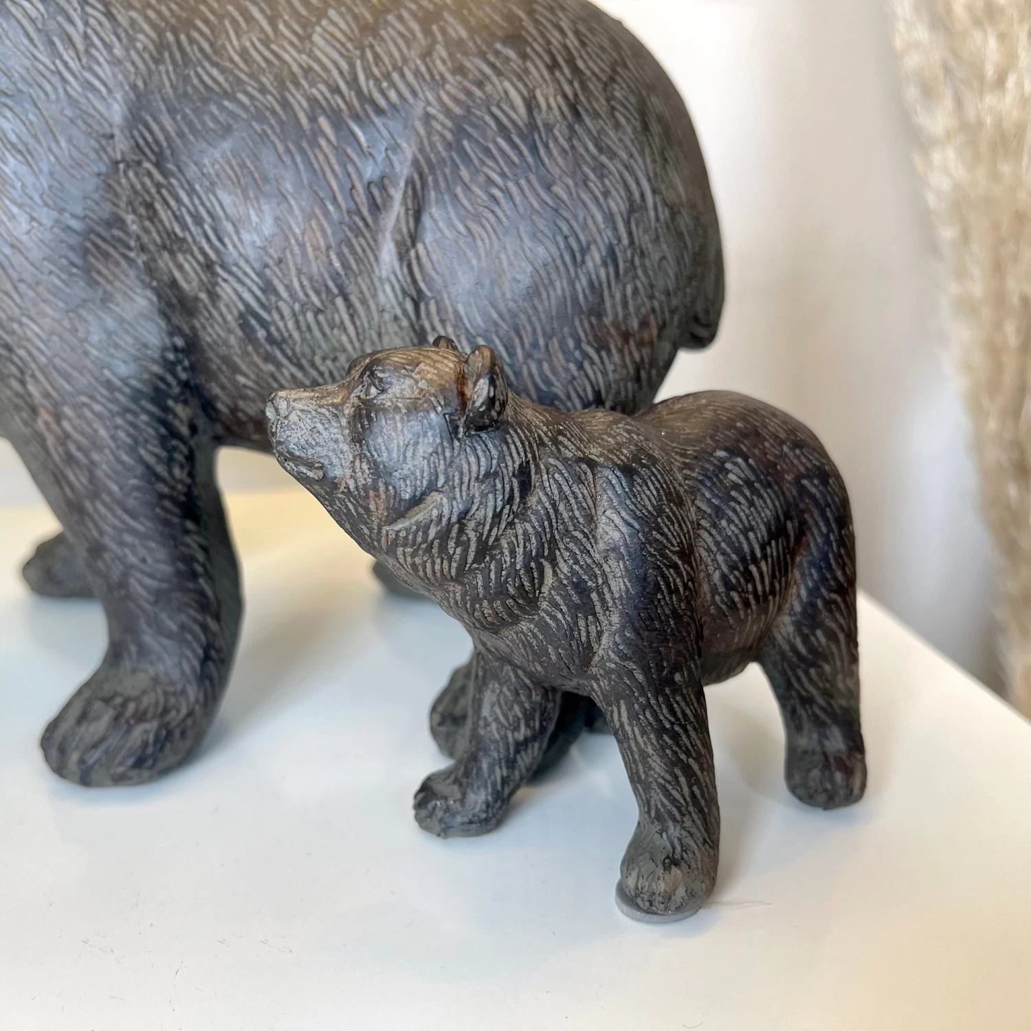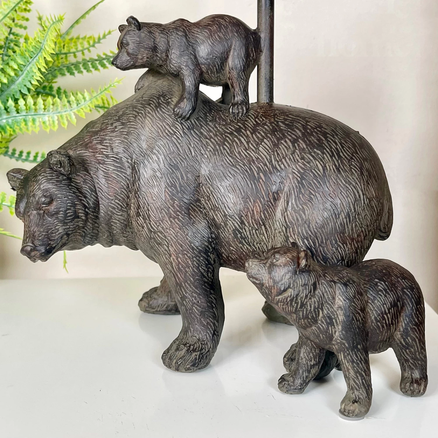 Add some quirky decor to your bedside/side table with this tall lamp featuring this bear family trio. This large centrepiece with intricate detailing will be a focal point of any room. This stunning piece, finished in a dark black shade and features a mischievous trio of bears with textured intricate detailing which brings this family to life. Equipped with a large white drum shade. Use a max 60W E27 light bulb to enjoy a warm, soft setting in your room.