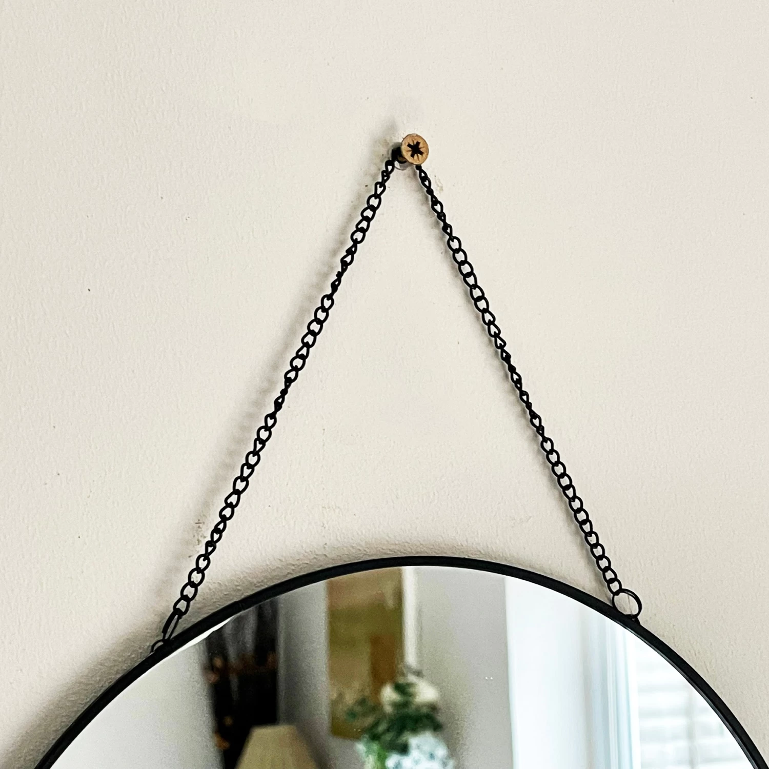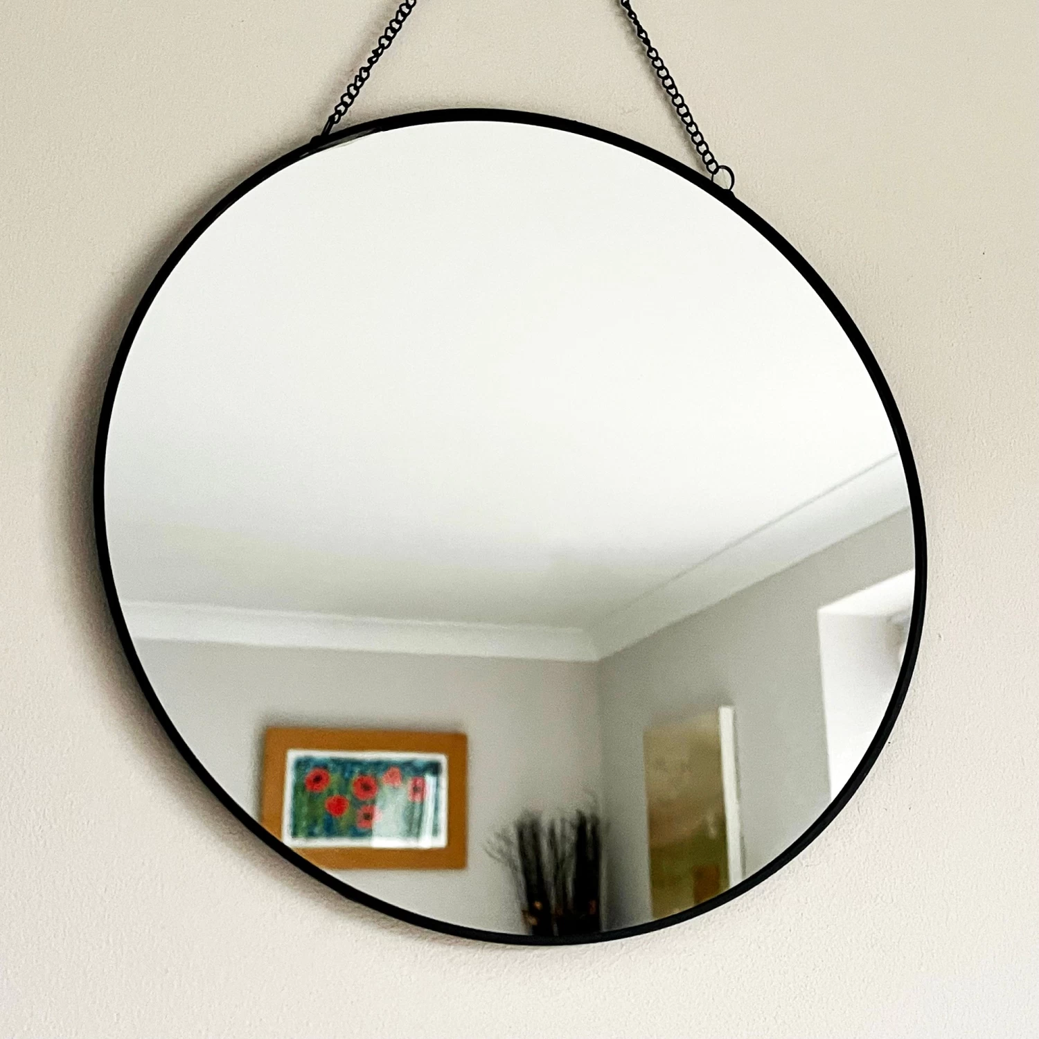 This timeless stylish black chain hanging mirror will suit almost any style of interior, adding additional light to any bathroom. Each mirror has a metallic black metal frame and chain to hang, making it the perfect anywhere in the home.