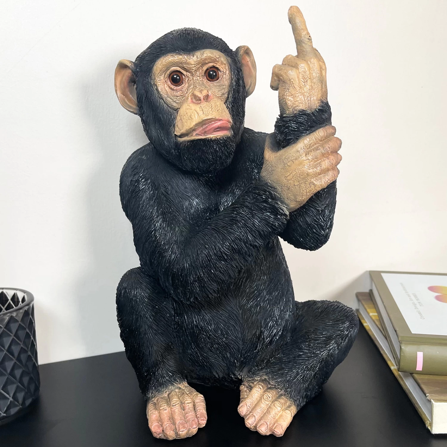 A hilariously rude and cheeky monkey gesturing the classic up yours with its middle finger. The novelty sculpture features a monkey in a realistic black textured finish. It is a resin ornament that will be a talking point in any indoor or outdoor space.