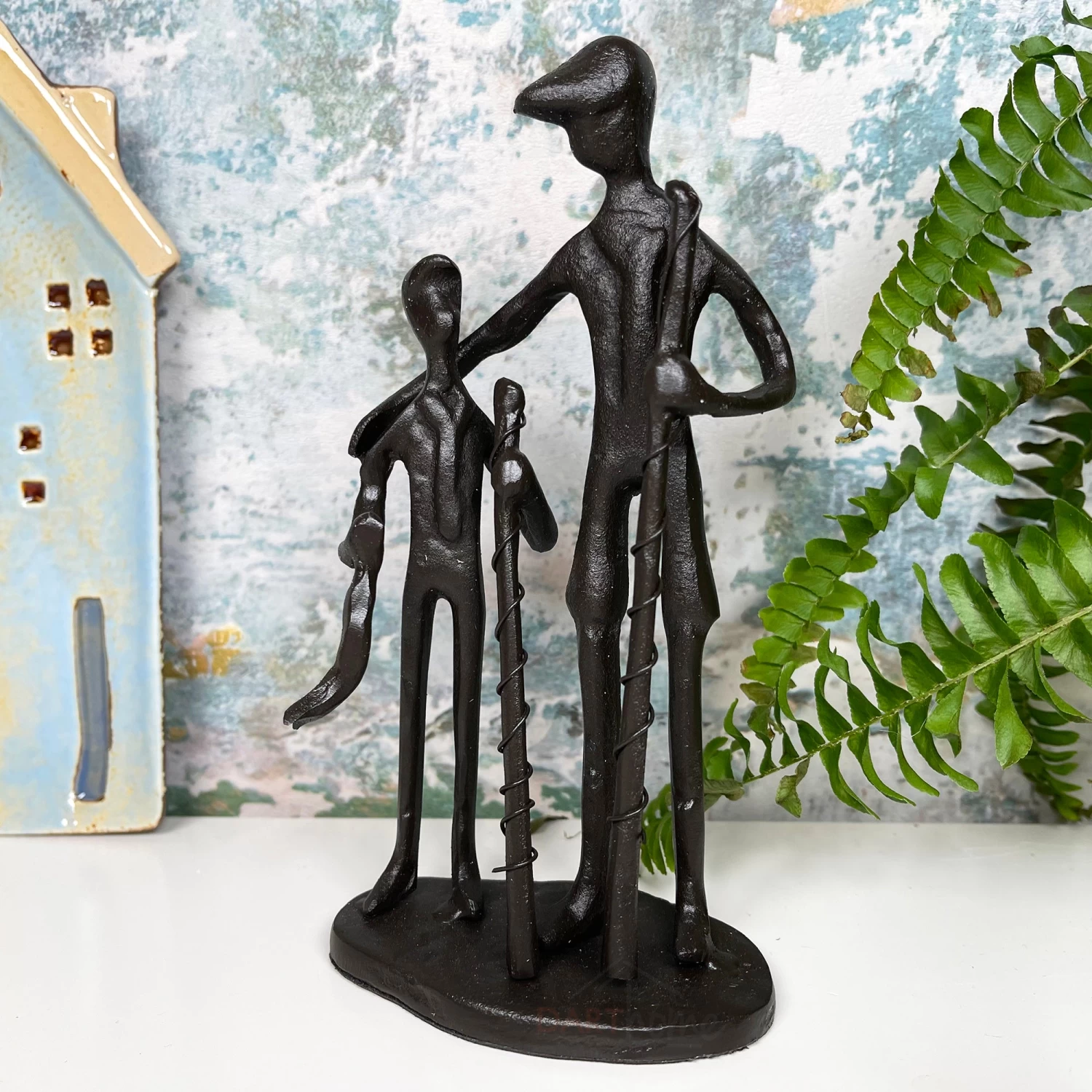 Fishing man and child captured in a stunning cast iron figurine with a deep black finish. This is a great gift idea for a fishing enthusiast. Indoor, freestanding product only. Perfect fathers day gift showcasing a loving father and son sharing a special moment together doing their favourite hobby.