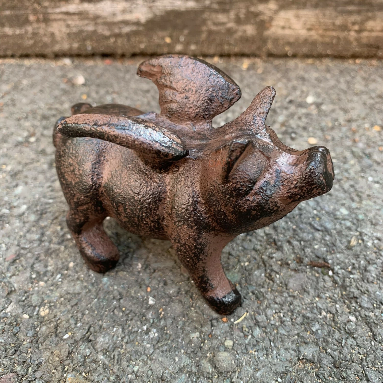 This standing flying pig in an angel theme is equipped angel wings is made from cast iron and designed to stand the test of time outdoors and would make a great addition to any home or garden.