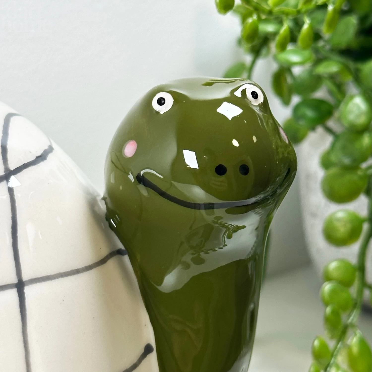 A coin moneybox featuring a green and white animated turtle, perfect for keeping your pounds and pennies safe until they need them! Made from ceramic, glazed and completed with a hand painted finish, this cute and animated animal money bank features a top coin slot and a silicone cup on the bottom.
