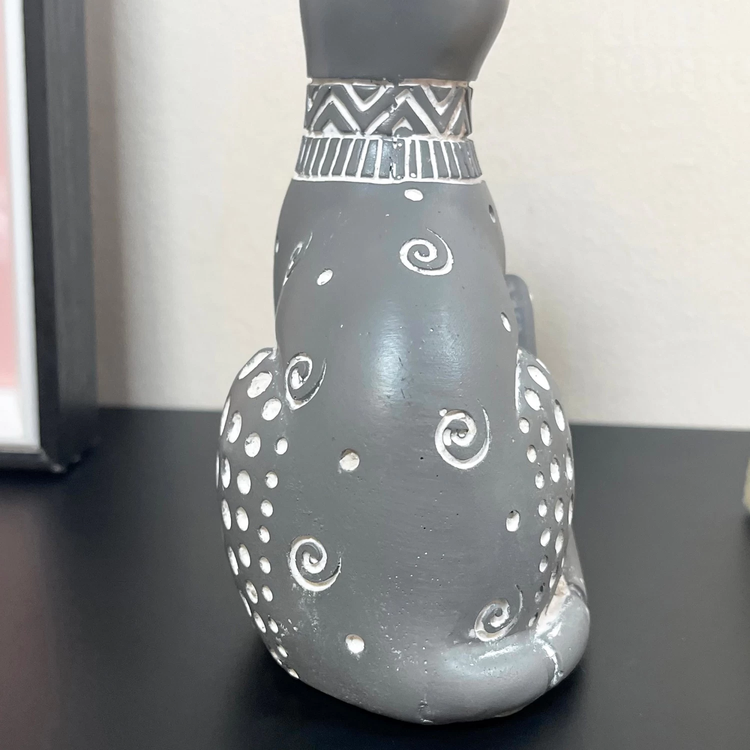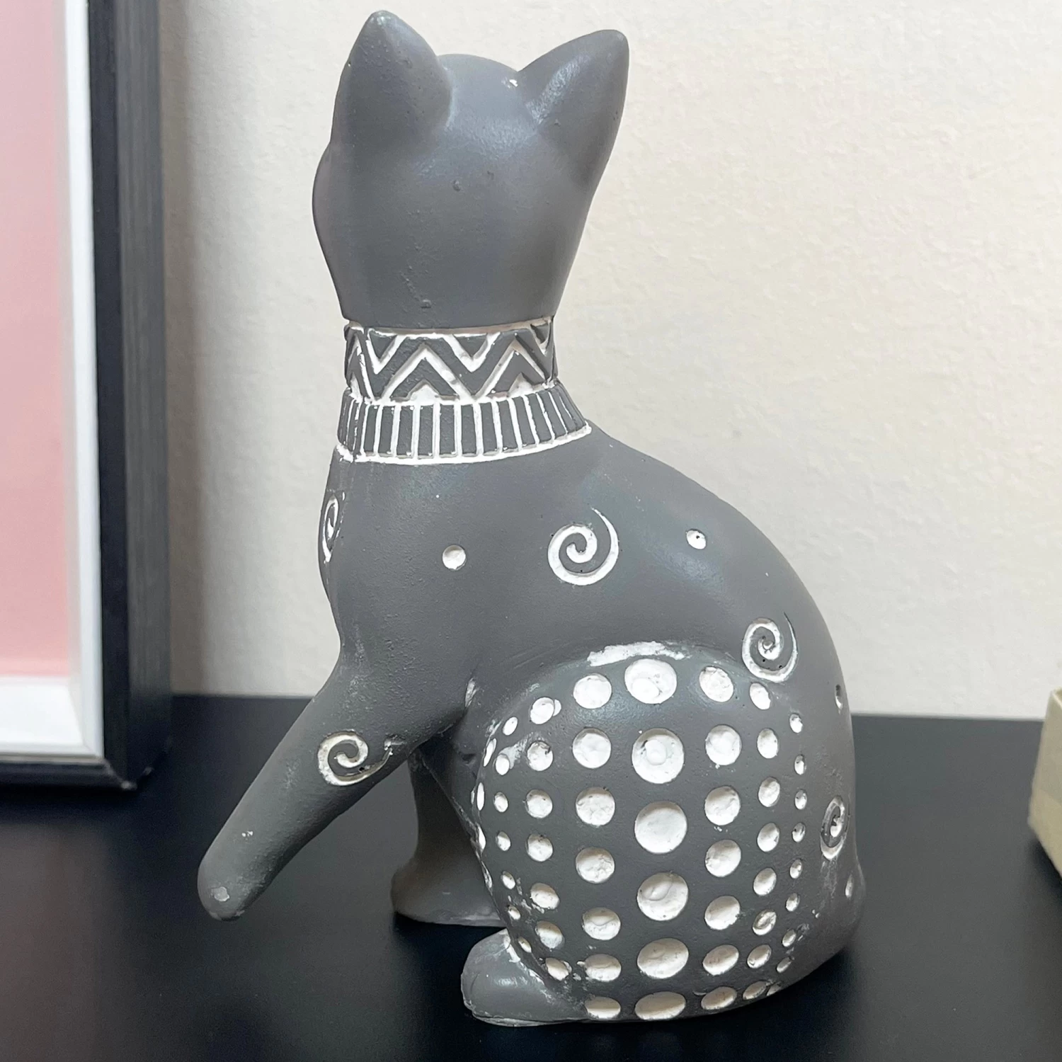 This indoor sitting cat ornament in a matt grey finish with white engraved detailing is a brilliant gift for cat lovers. It is a freestanding product, with a distressed painted finish. It will fit great in your home.