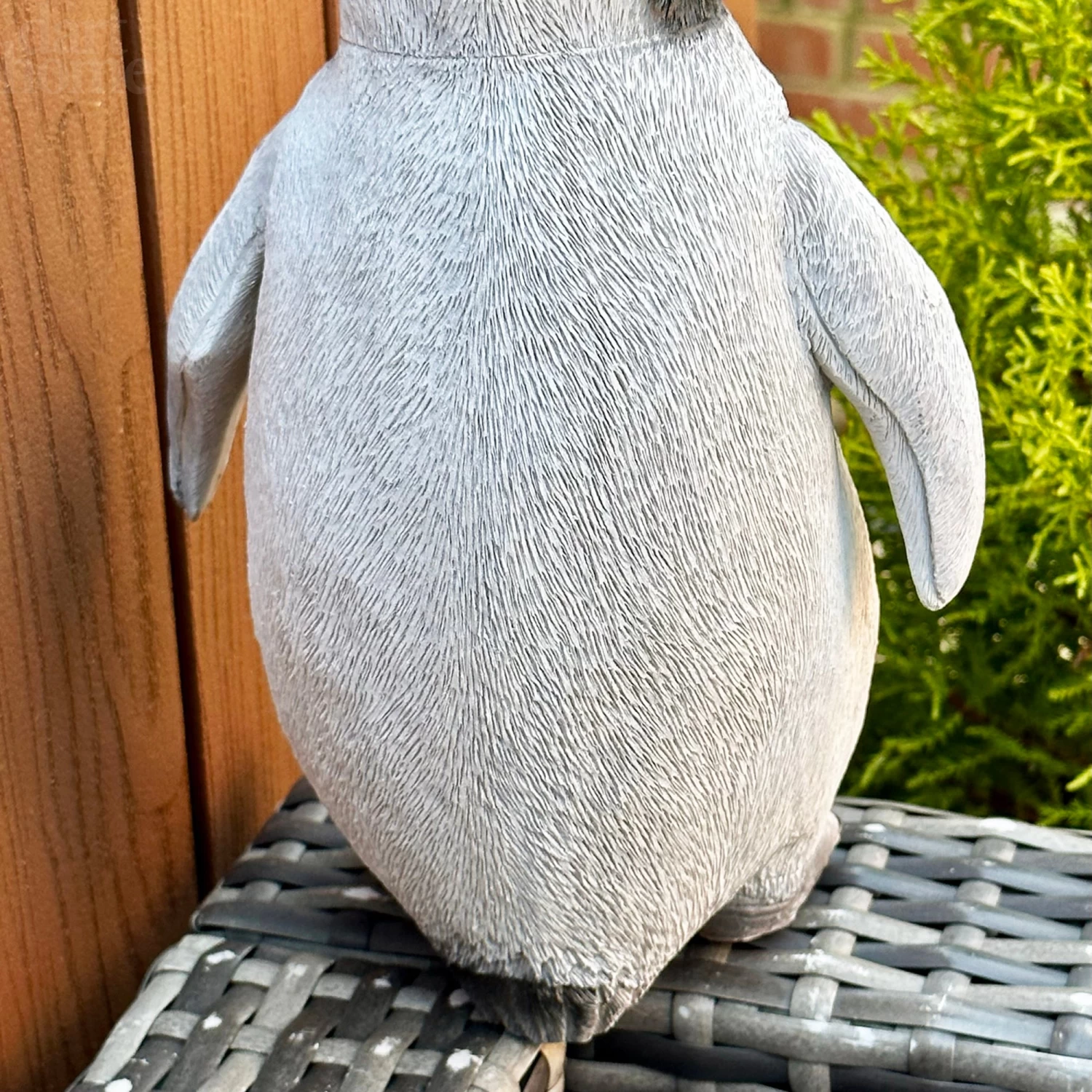 This cute majestic baby penguin squawking for his parents is a resin made sculpture, decorated with a realistic colourway that brings this little bird to life. Place indoor and outdoor for year-round decoration.