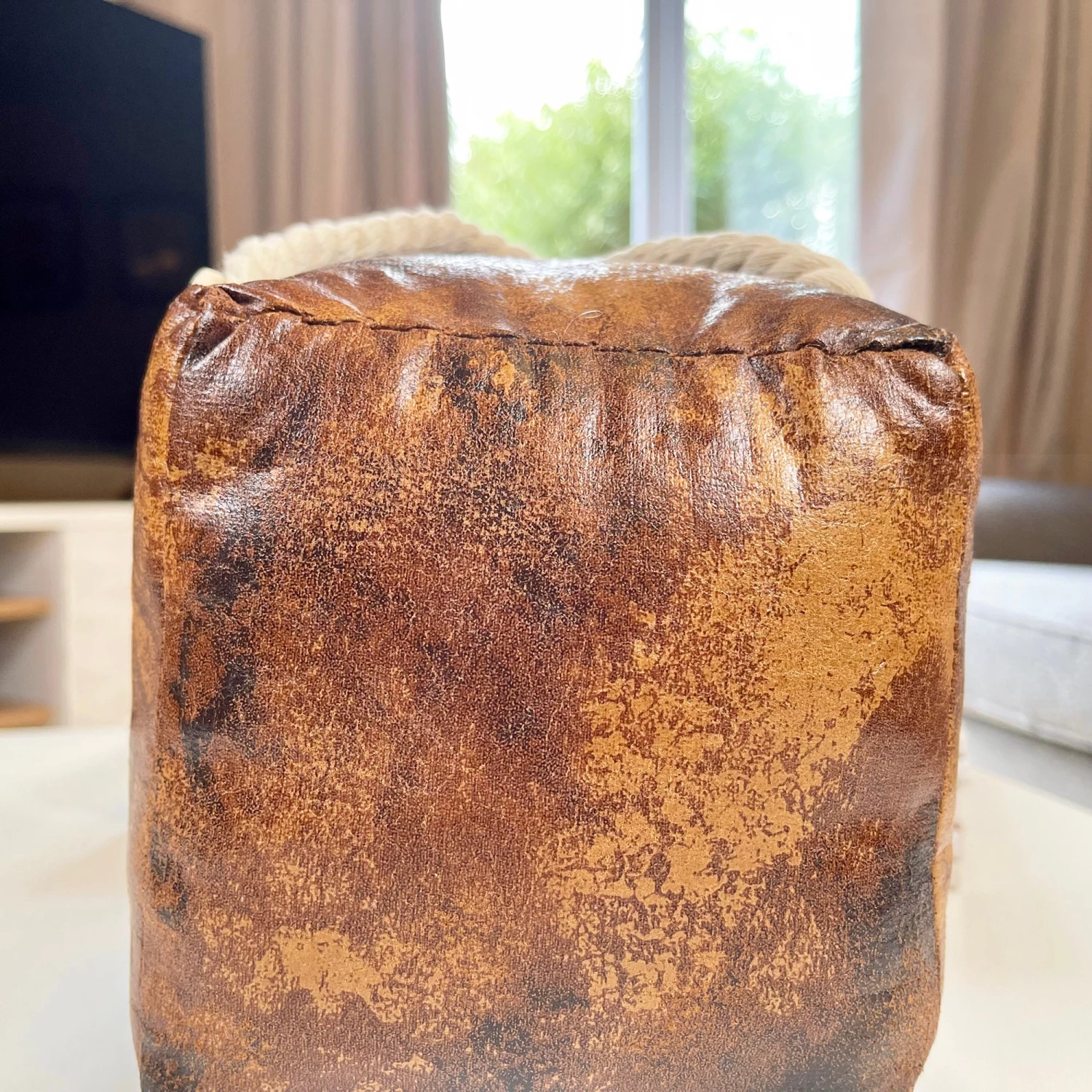Bring some rustic style and charm into your home with our brown faux leather square doorstop featuring a quote design reading welcome family & friends. This heavy duty door stopper is free standing in a cube shape with a buttoned rope handle to top.