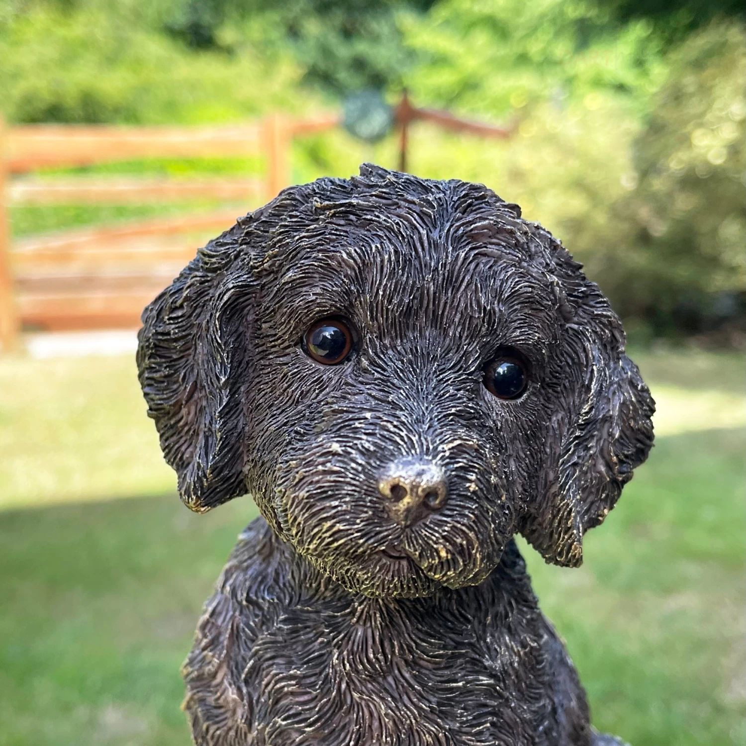 This vintage gold resin cockapoo dog ornament is a beautiful piece that will look great in your home. It is the perfect gift for all those dog lovers out there and serves as a great shelf sitter.