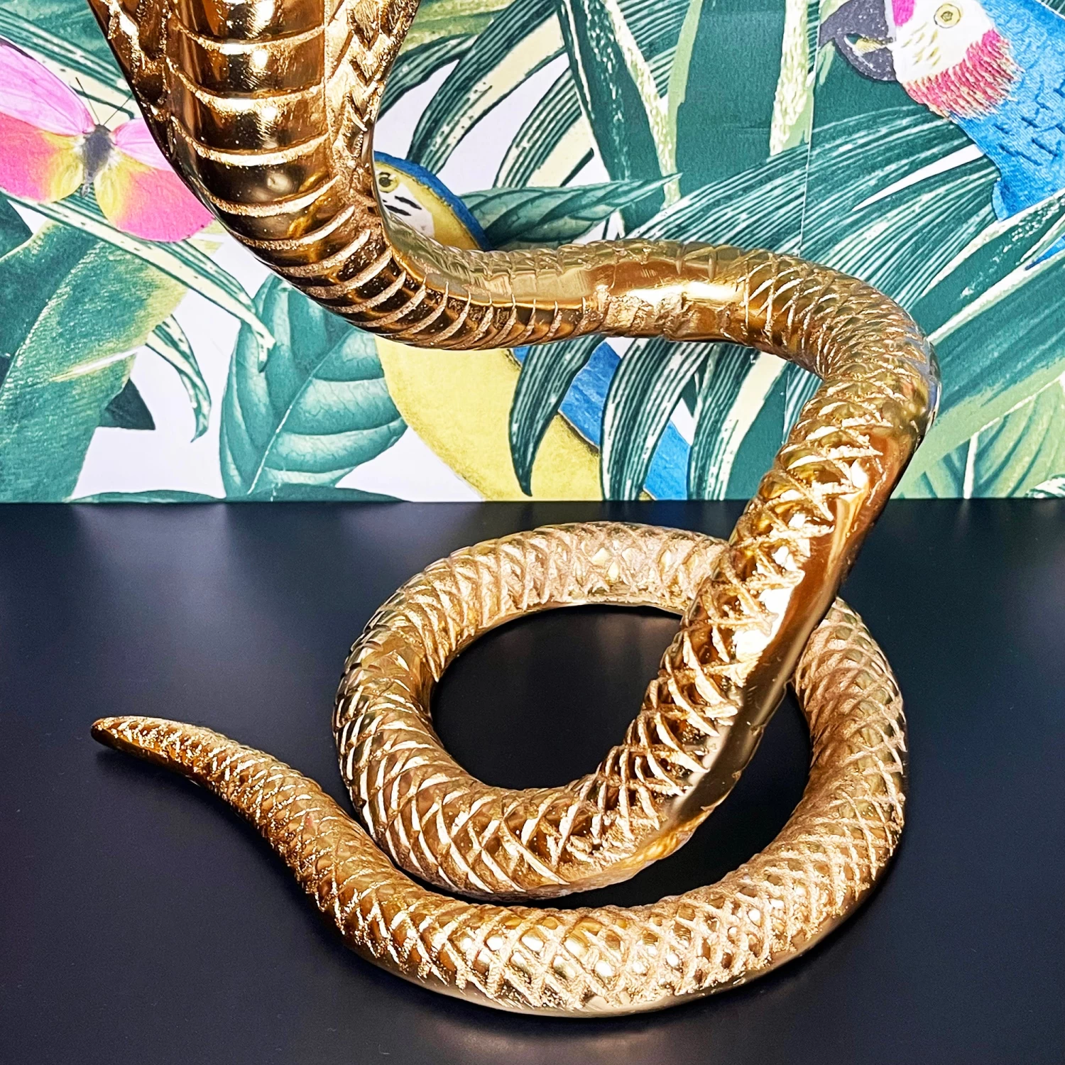 With a single candle holder neatly sat upon the head, this quirky golden candlestick holder captures a coiled snake and decorated with realistic, excellently detailed textured features that bring this unique ornament to life. It will easily mix into your exiting home decor wherever it is placed, whether that be in the living room, bedroom or bathroom.