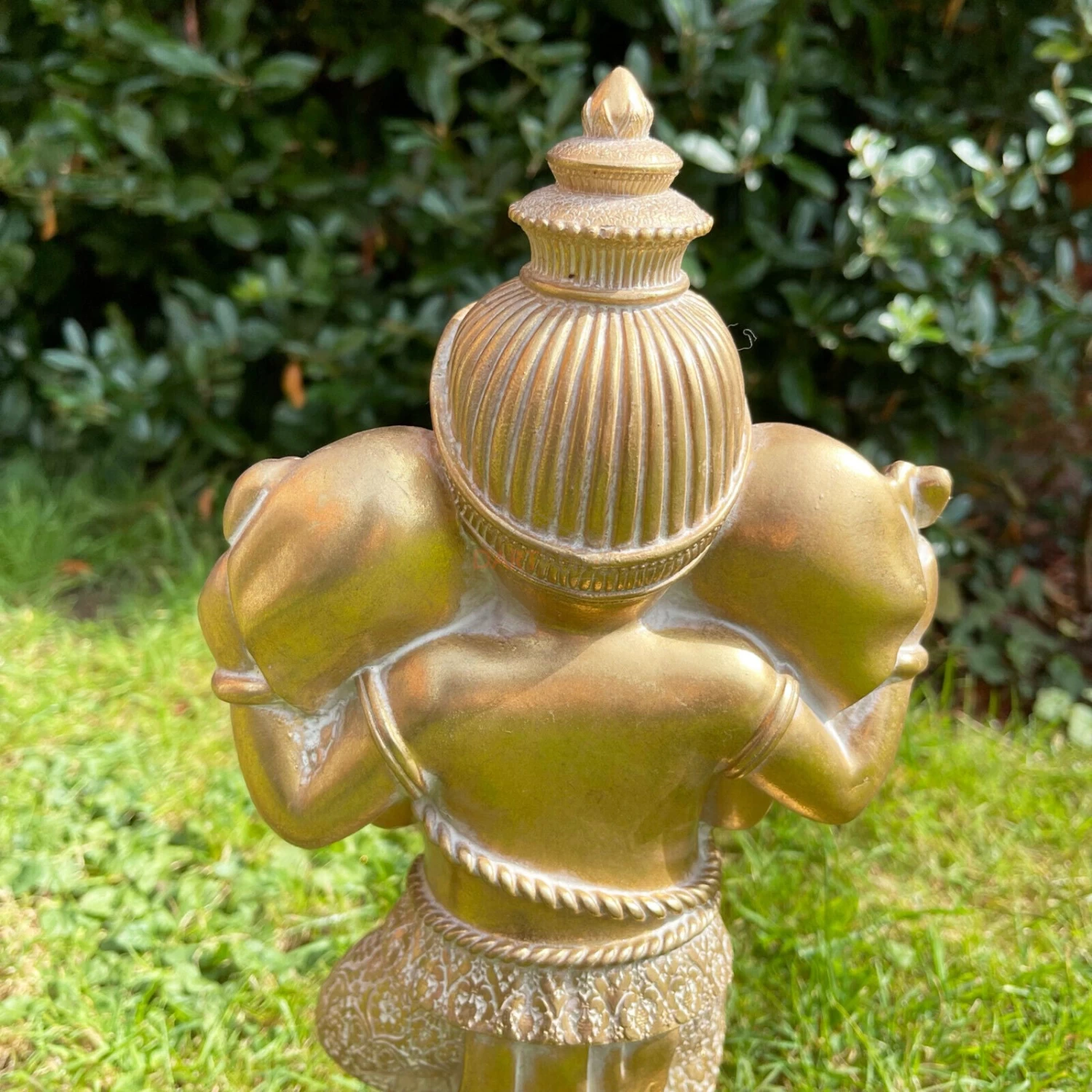 Dancing gold ganesh made from resin. This statue is a stunning religious symbol that would look great in your home. The hindu elephant comes on a round stand. Comes indivually boxes in standard retail packaging.