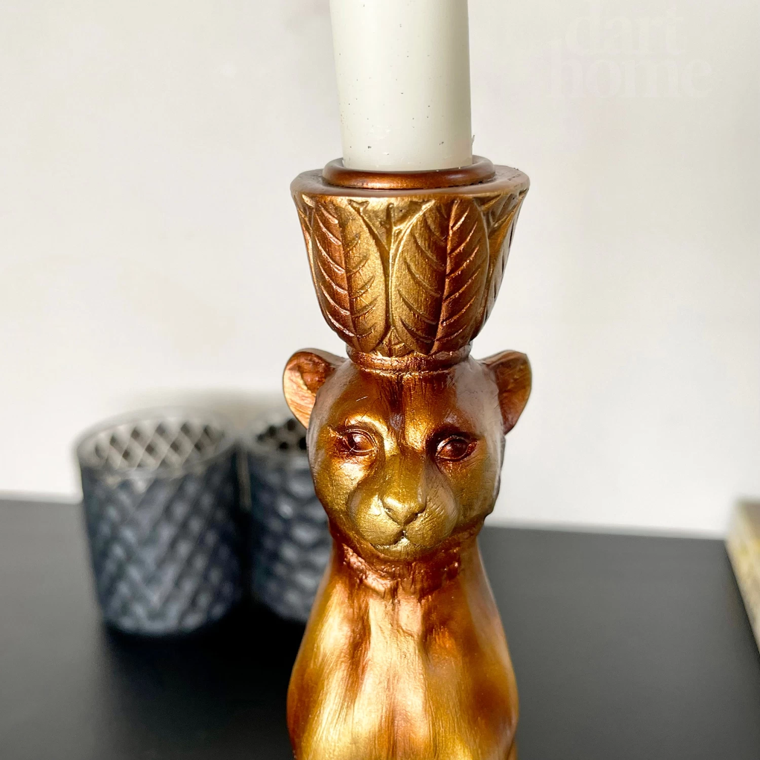 With its head holding up a dinner candle, this quirky candlestick holder captures a leopard seated upon a leaf decorated round plinth base, with excellently detailed bodily and facial features that bring this unique ornament to life. It will easily mix into your exiting eclectic home decor wherever it is placed, whether that be in the living room, bedroom or bathroom.