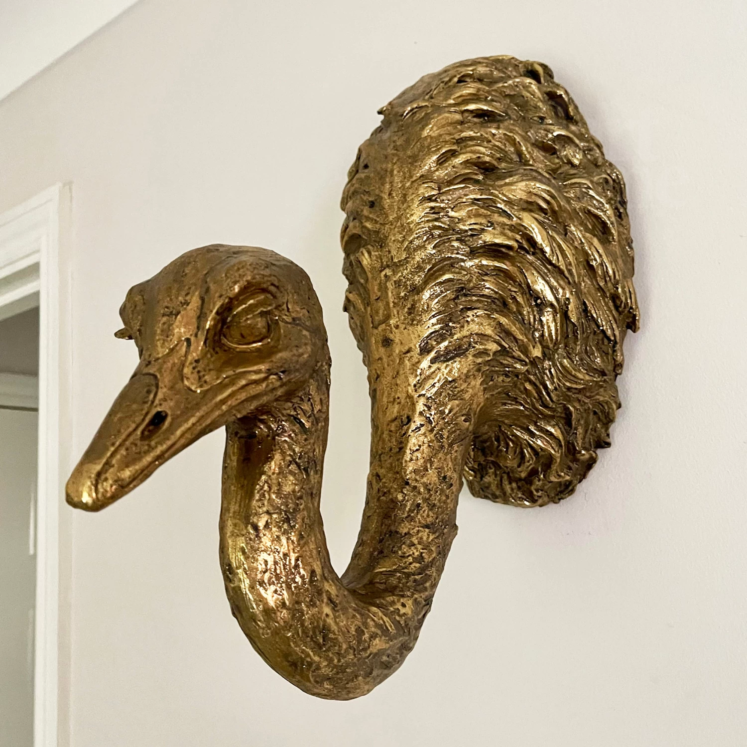 This quirky wall decoration features a detailed Ostrich head in an opulent gold textured finish. It is a wall mounted piece suitable for indoor use only and will enhance your exotic home decor in any room, particularly your living room or hallway. Care instructions – Clean with a damp cloth.