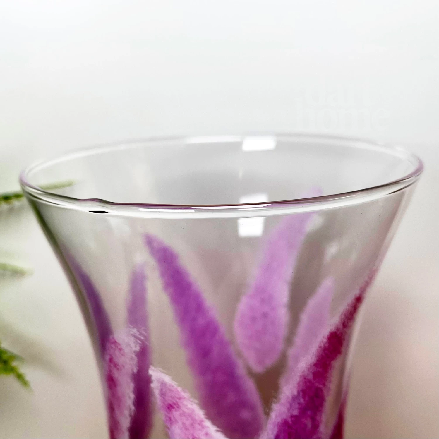 Decorate your home with this beautiful hand painted glass tall vase, boasting a pink pampas design. This will instil colourul charm and natural style onto your table or windowsill.