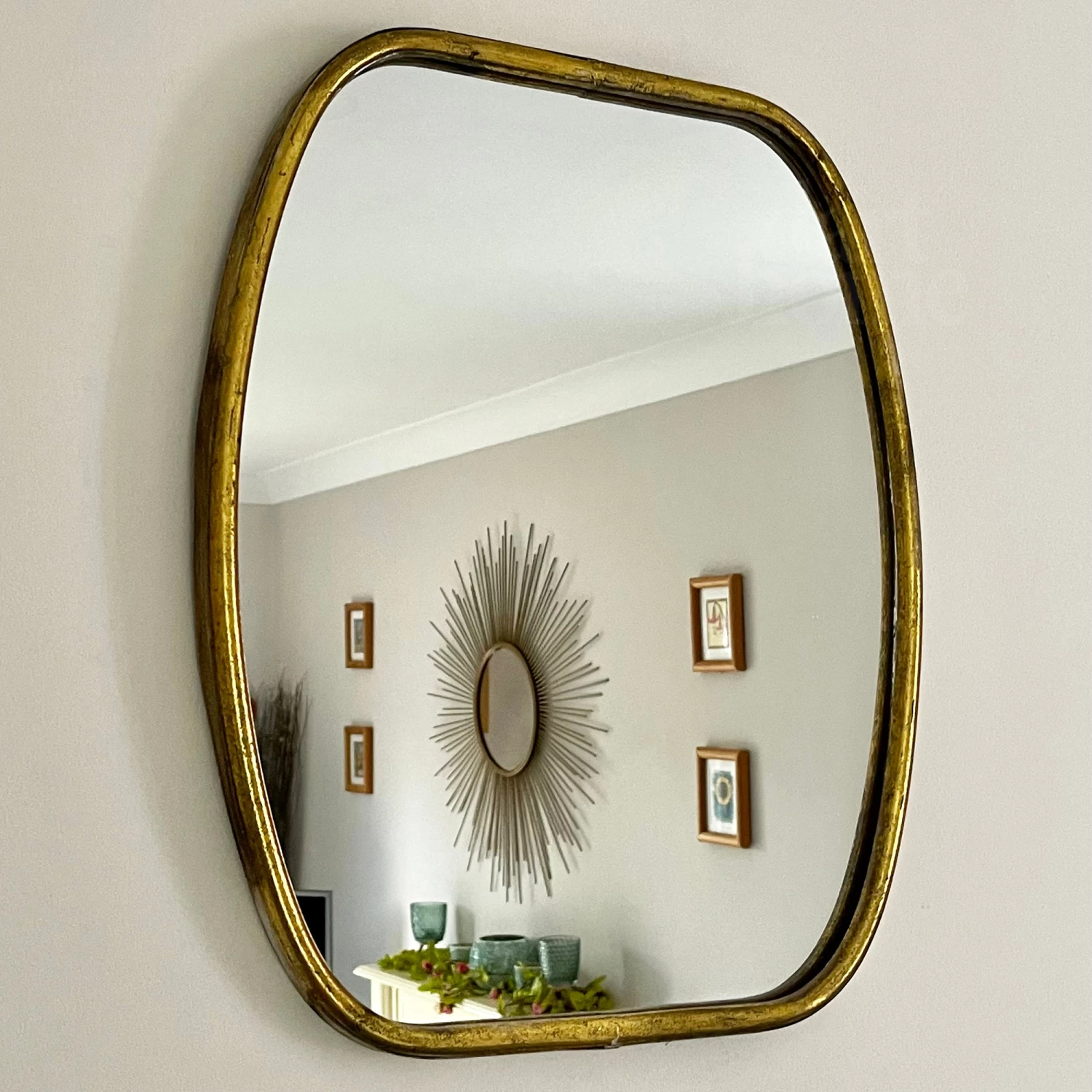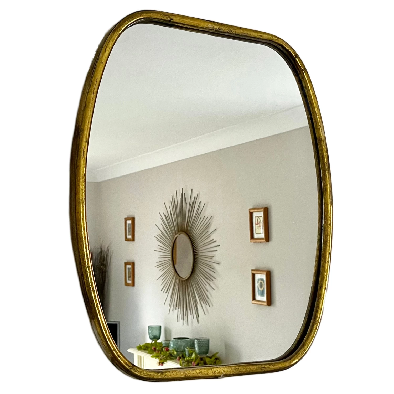 This gorgeous vintage style distressed gold mirror would look great in any room in the home.
