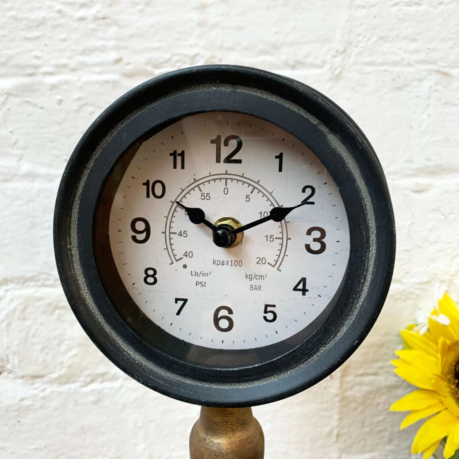 This antique style pipe clock has a distressed finish that completes the vintage look you aspire to achieve in your home.