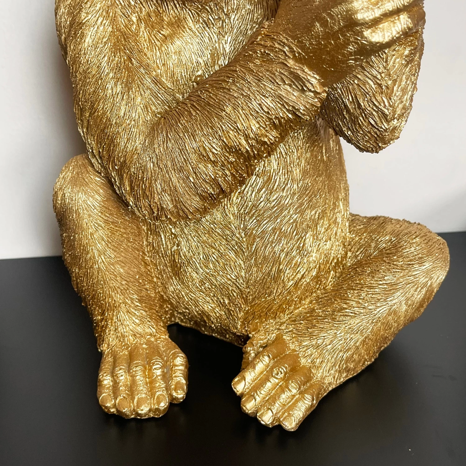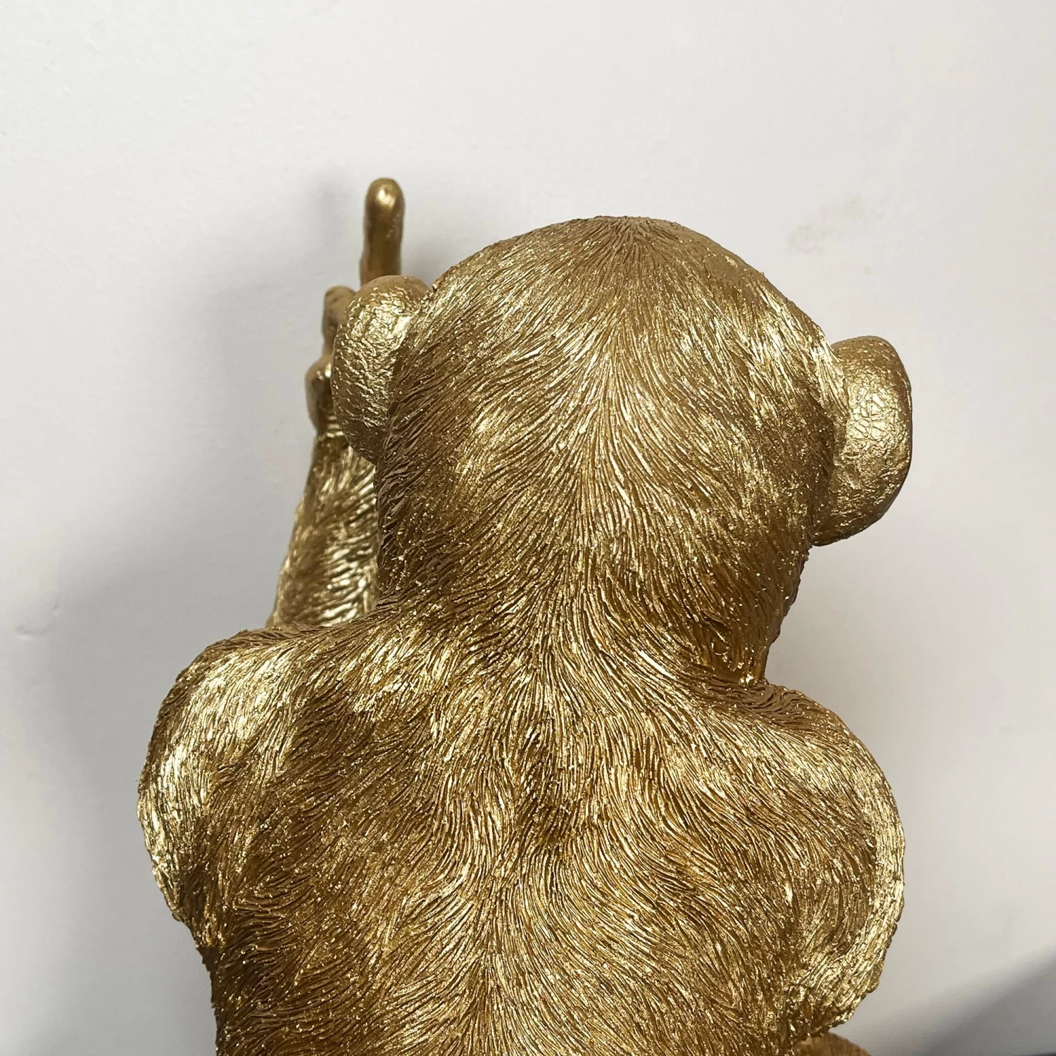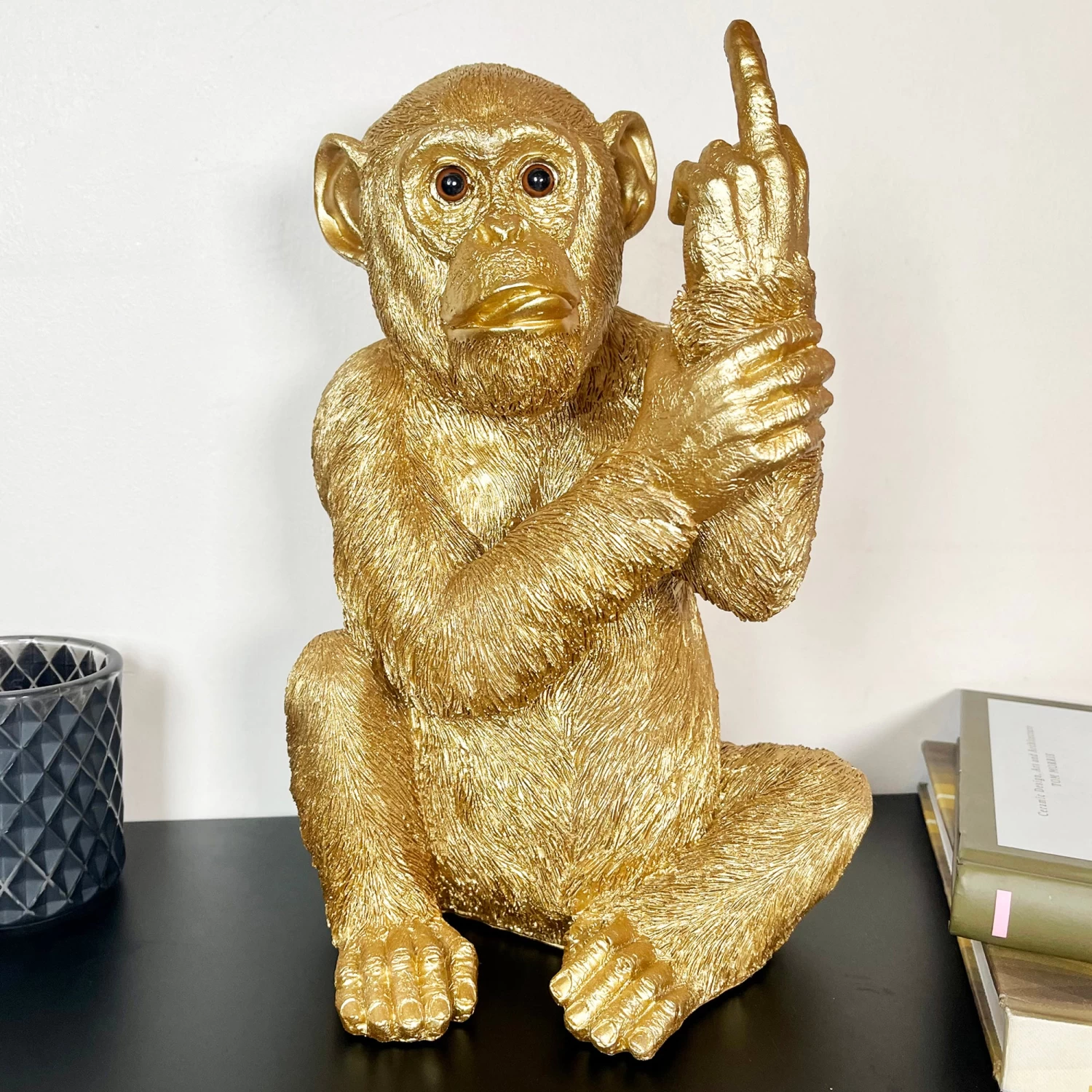 Features: 3D Effect, Textured Gold, Sitting Monkey, Up Yours Monkey, Middle Finger Gesturing, Free Standing, Indoor