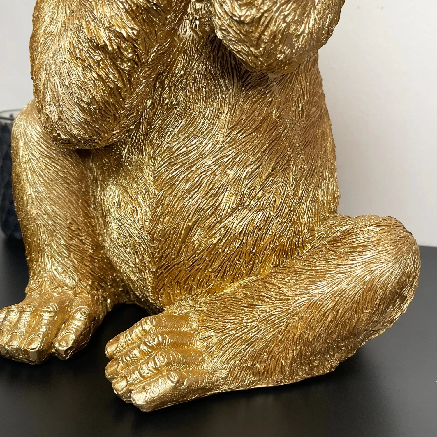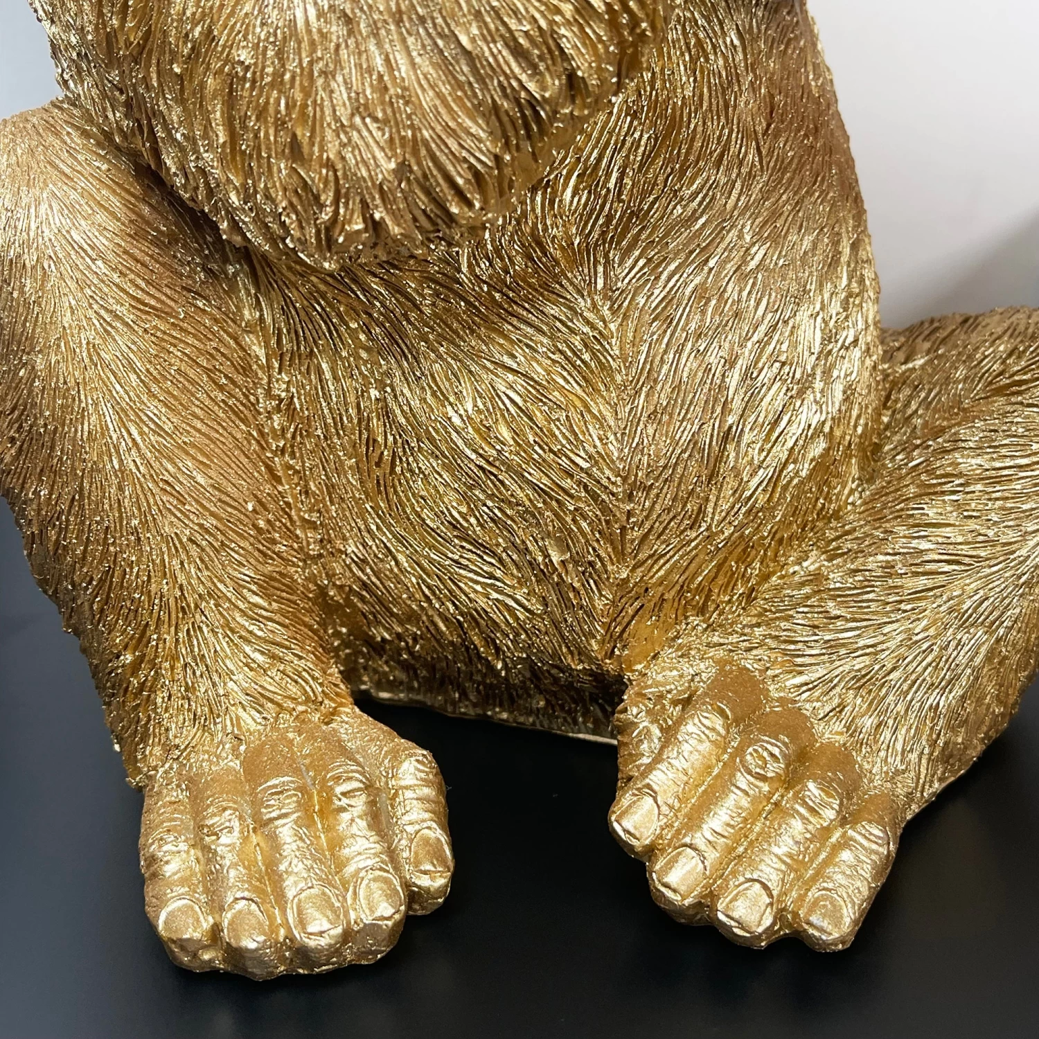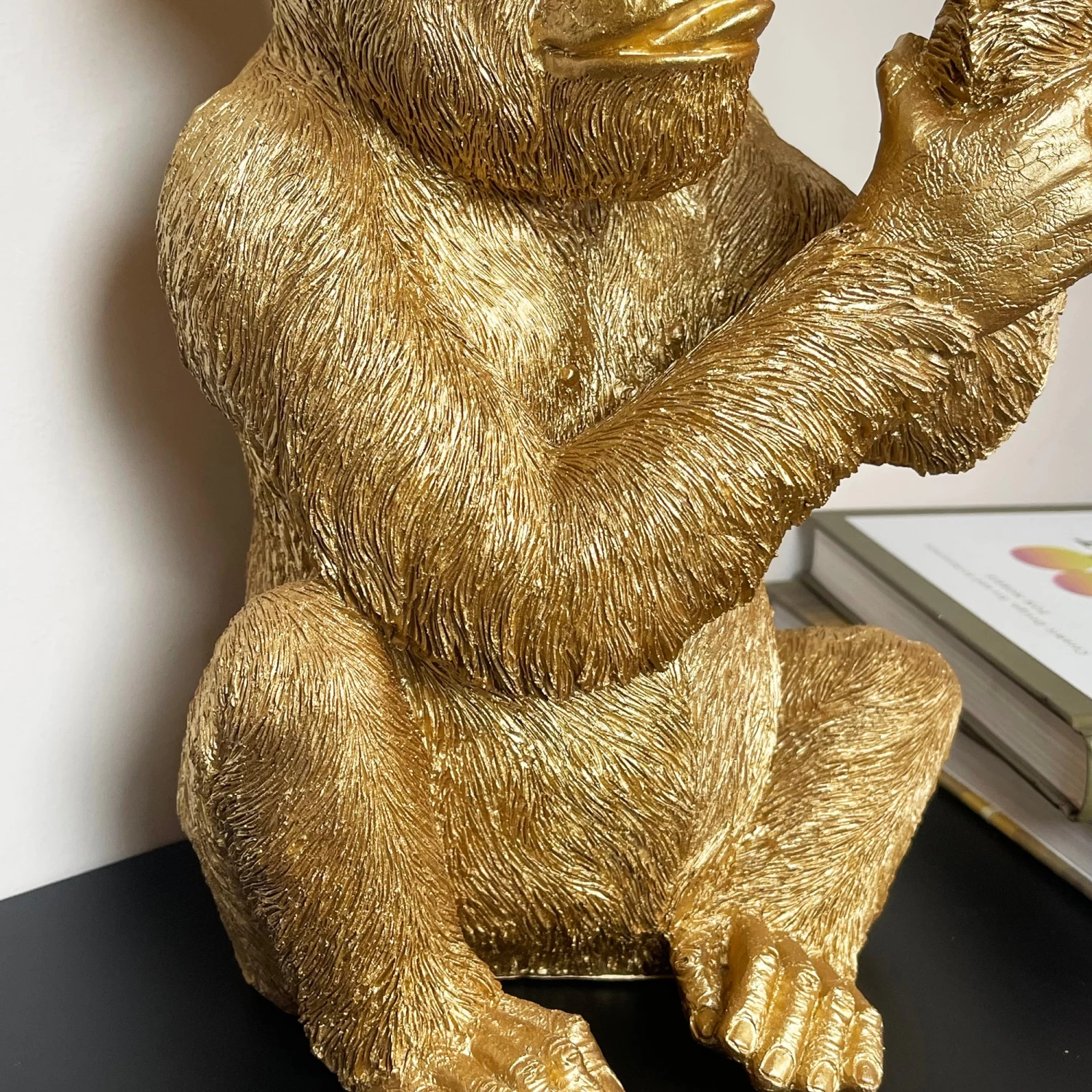Features: 3D Effect, Textured Gold, Sitting Monkey, Up Yours Monkey, Middle Finger Gesturing, Free Standing, Indoor