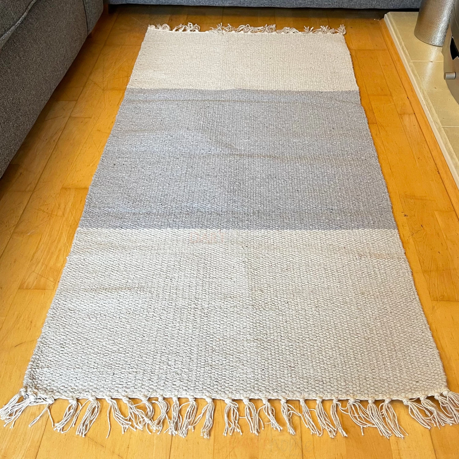 Classic, traditional, neutral living room rug in a two tone design with a light grey centre. This rug is perfect for an open area that needs a touch of decor and natural colouring. These rectangular rugs come in 75x135cm size and are perfect for the lounge or bedroom area.