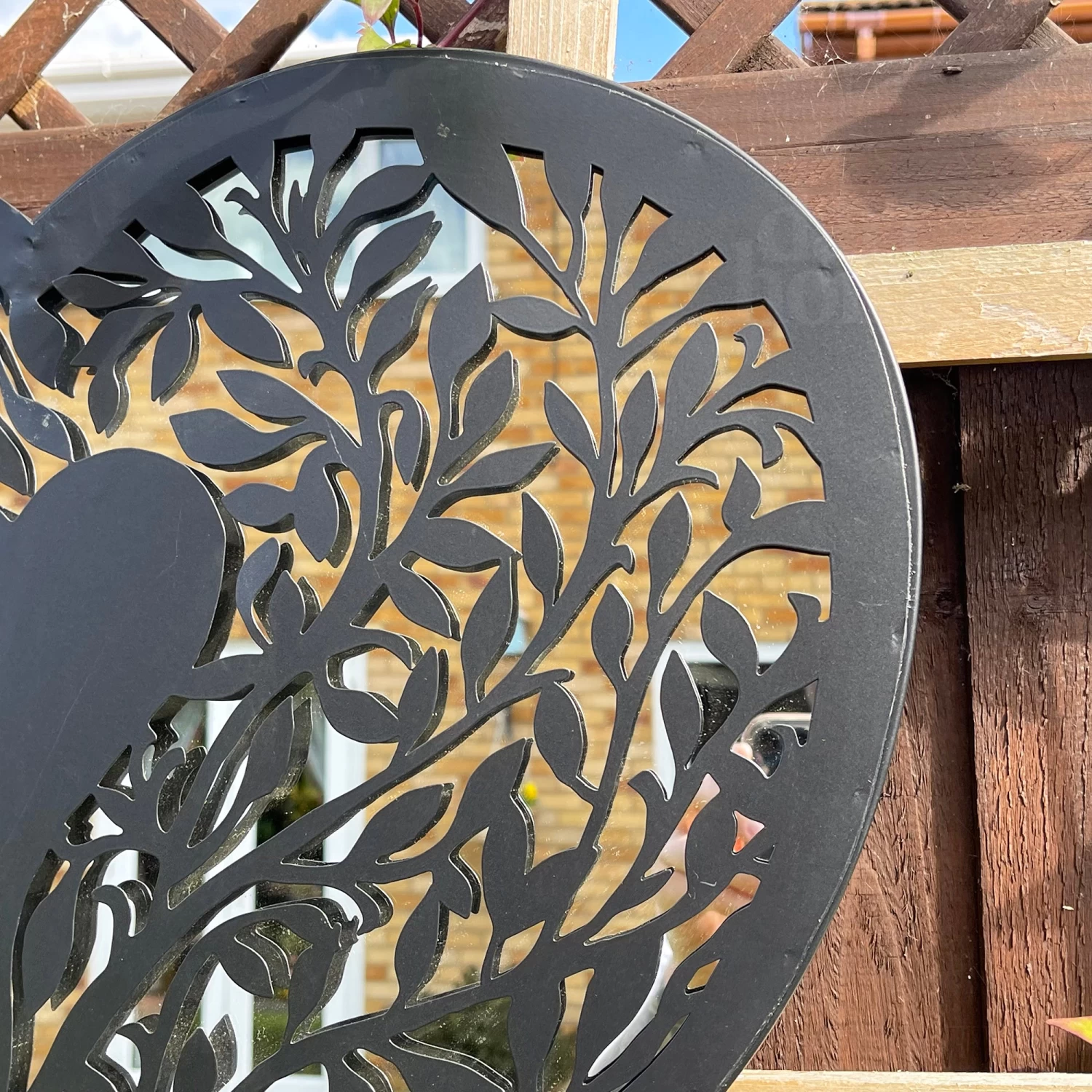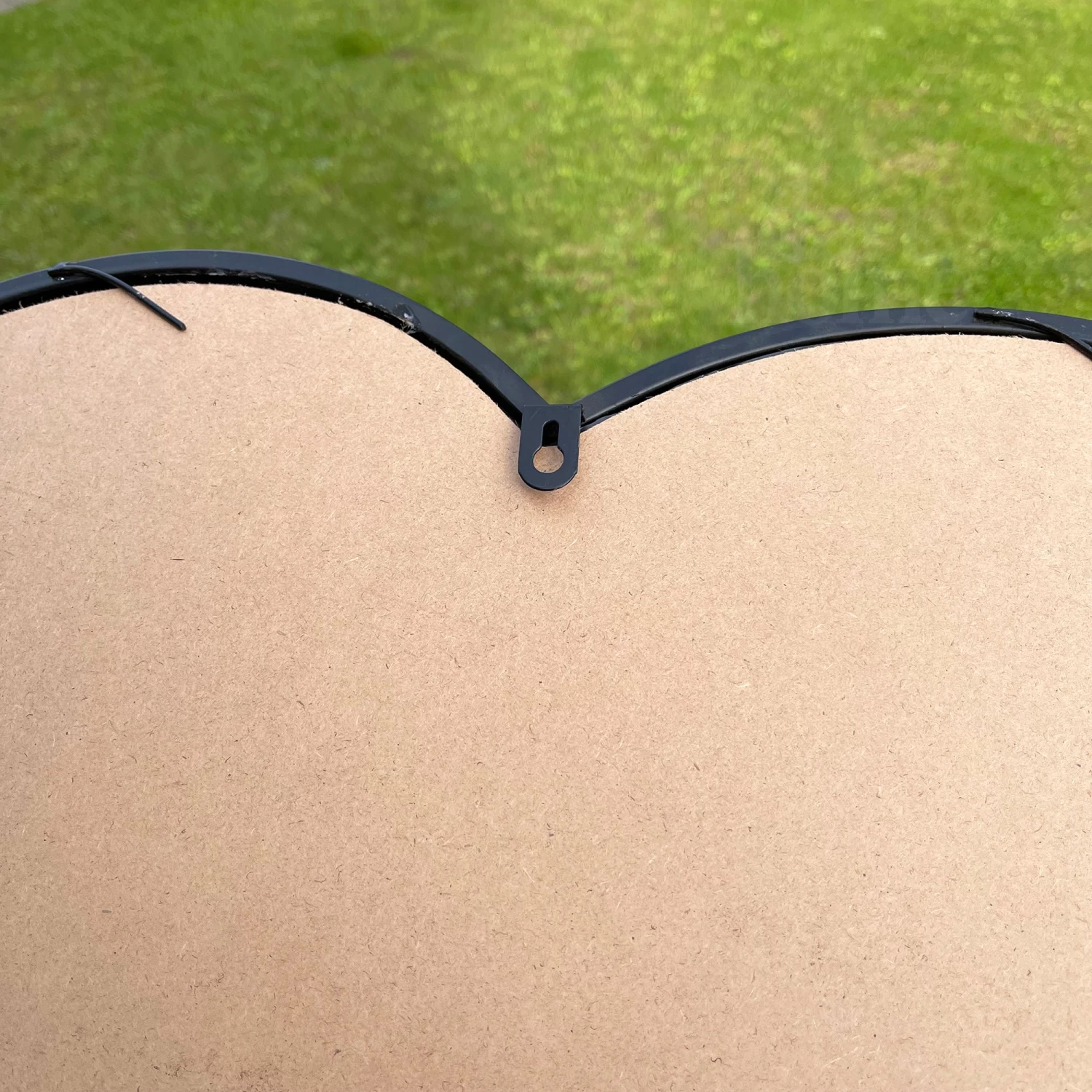 This love heart shaped contemporary wall mounted mirror is suitable for indoor and outdoor use. Its frame is made from metal in a deep black finish that offers a silhouette style when the sun is shining on it.
