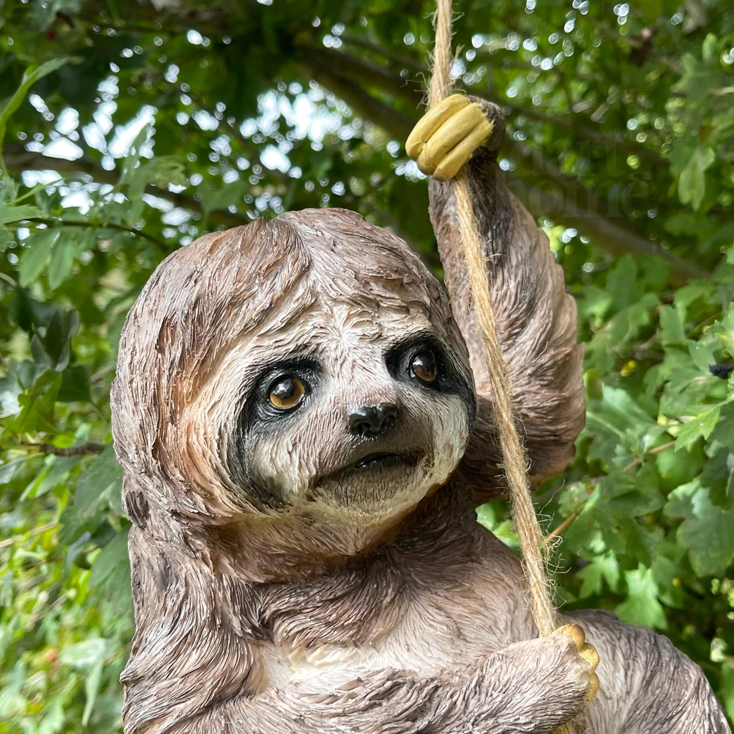 Spice up your home or garden with this hanging resin brown sloth sculpture. This totally unique design is sure to be the talking point at your next BBQ! Comes equipped with a long rope to fixate your garden sloth to the tree or wall.