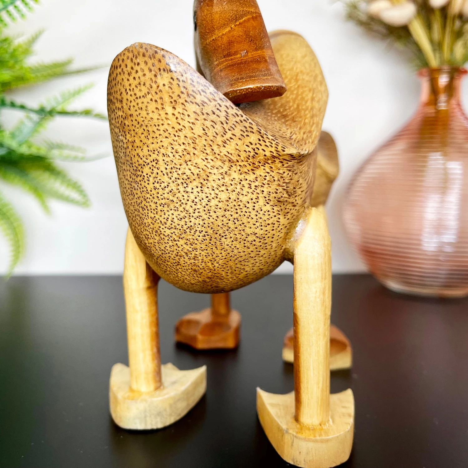 Add a romantic rustic touch to your home with this wooden ornament capturing a hugging mr and mrs pair of ducks, quietly sharing a moment of embrace. These ducks are hand carved using natural wood and varnished to offer a smooth glossy finish. They are a great gift idea for a new couple.