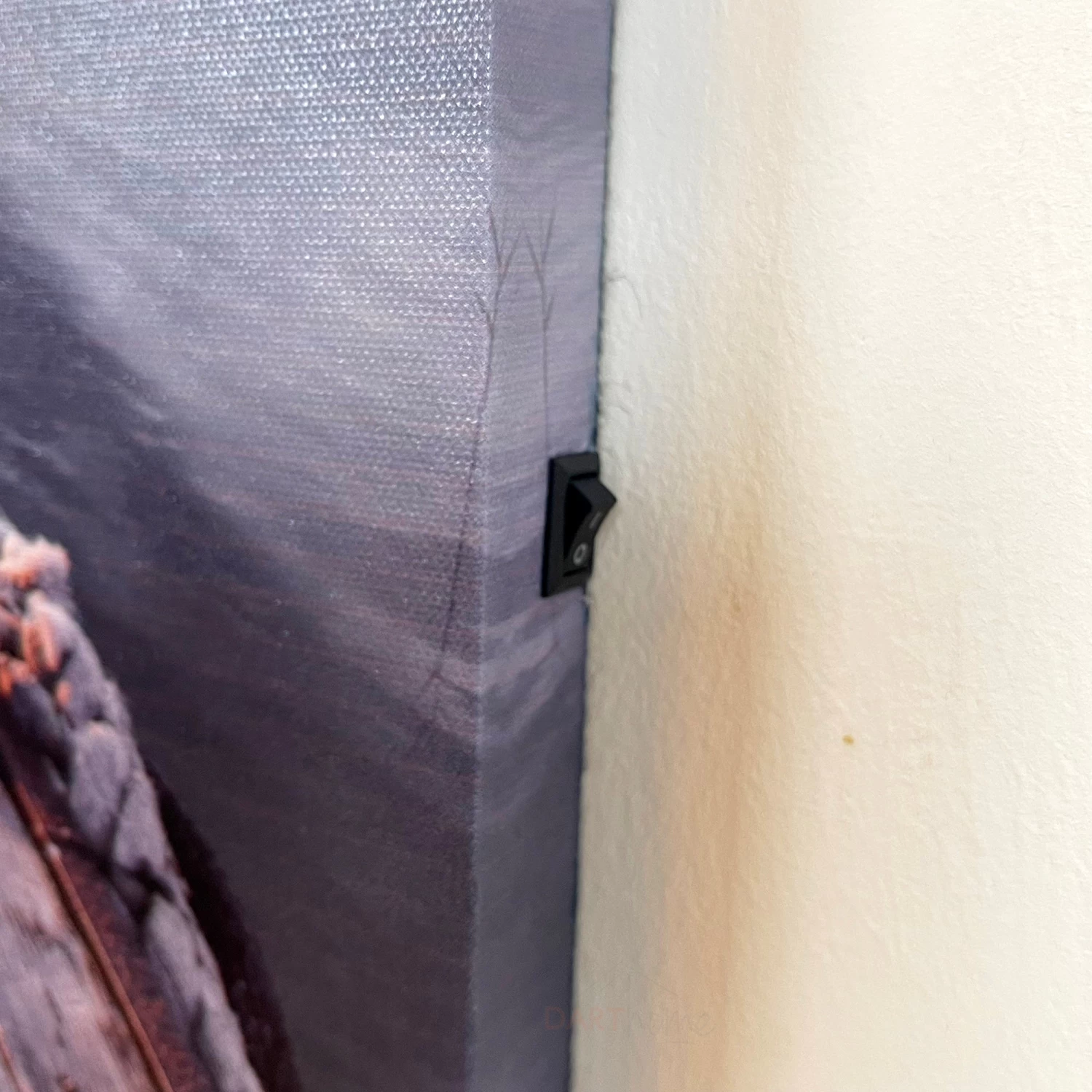 This LED lit square canvas is a stunning piece of wall art with a HD printed seashore jetty scene printed onto it. It is a colourful piece with a switch on its side to turn on the specially placed LED bulbs.