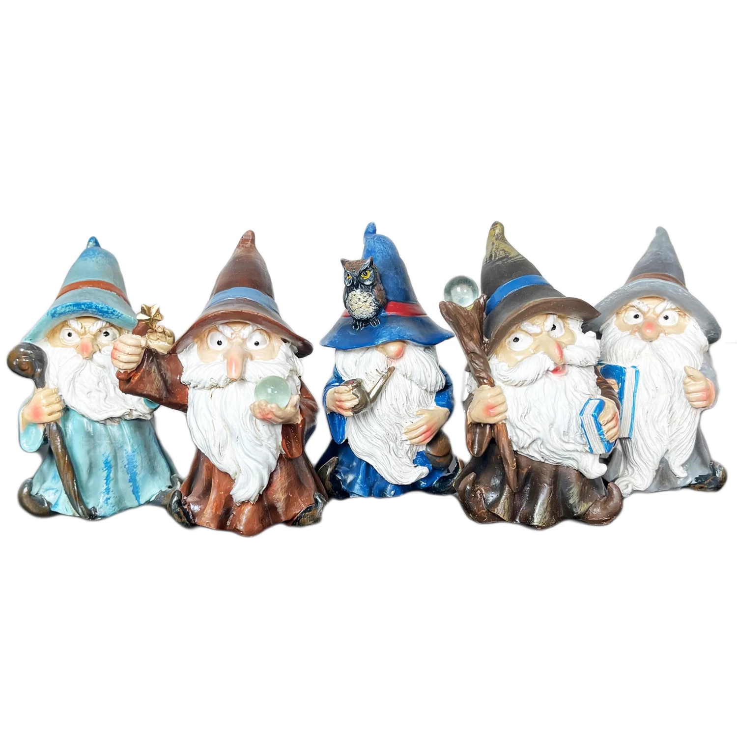 This fun and magical set of 5 miniature wizard figurines perfect for bedroom decoration. This assorted collection of fantasy wizards are made from resin with distressed finishes to offer a vintage retro look.