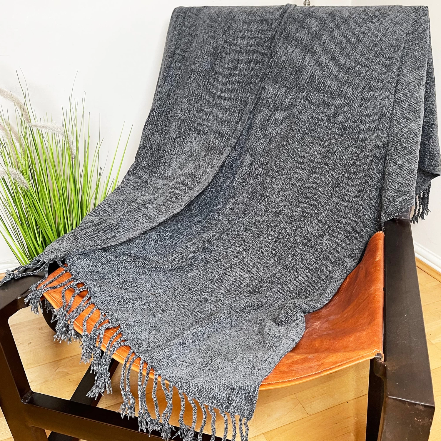 This soft navy blue throw with tassels comes rolled with a plaid pattern design and is perfect for warming you and your loved one up on a cold winters evening. Perfect for snuggling and watching a film!