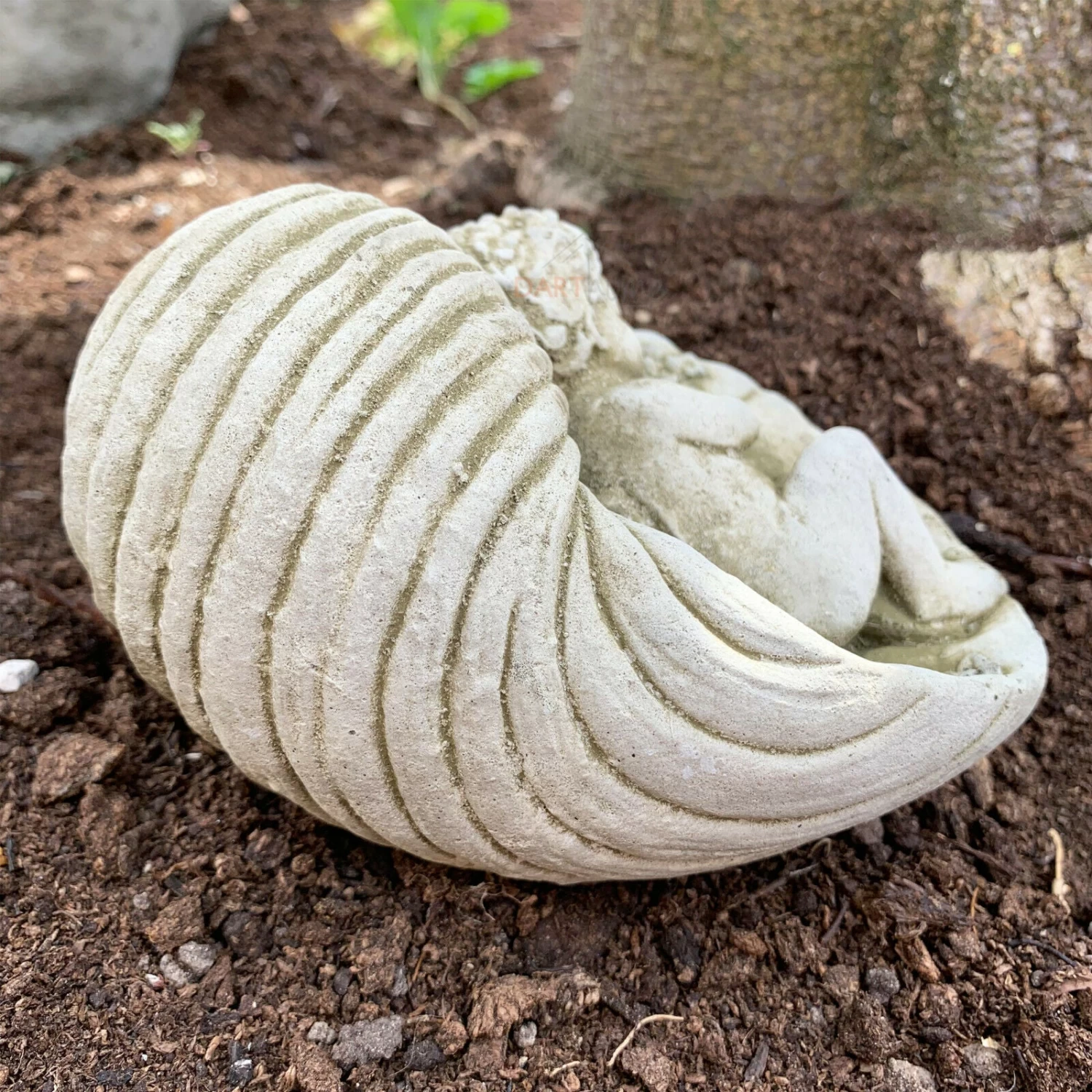 - Features: Outdoor, Freestanding, Frost-protected, Weatherproof, Sleeping Angel Boy, Large, Small Oval Round Shaped Shell