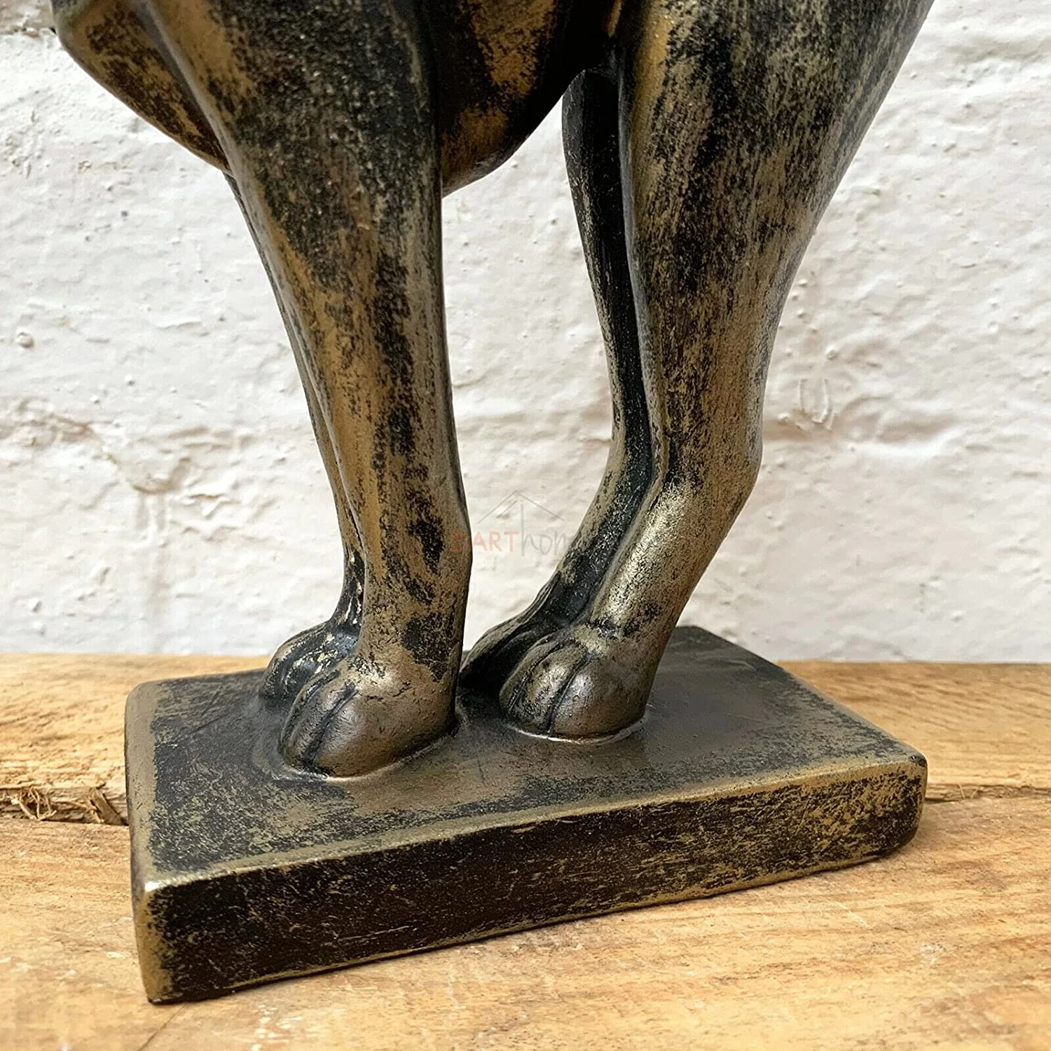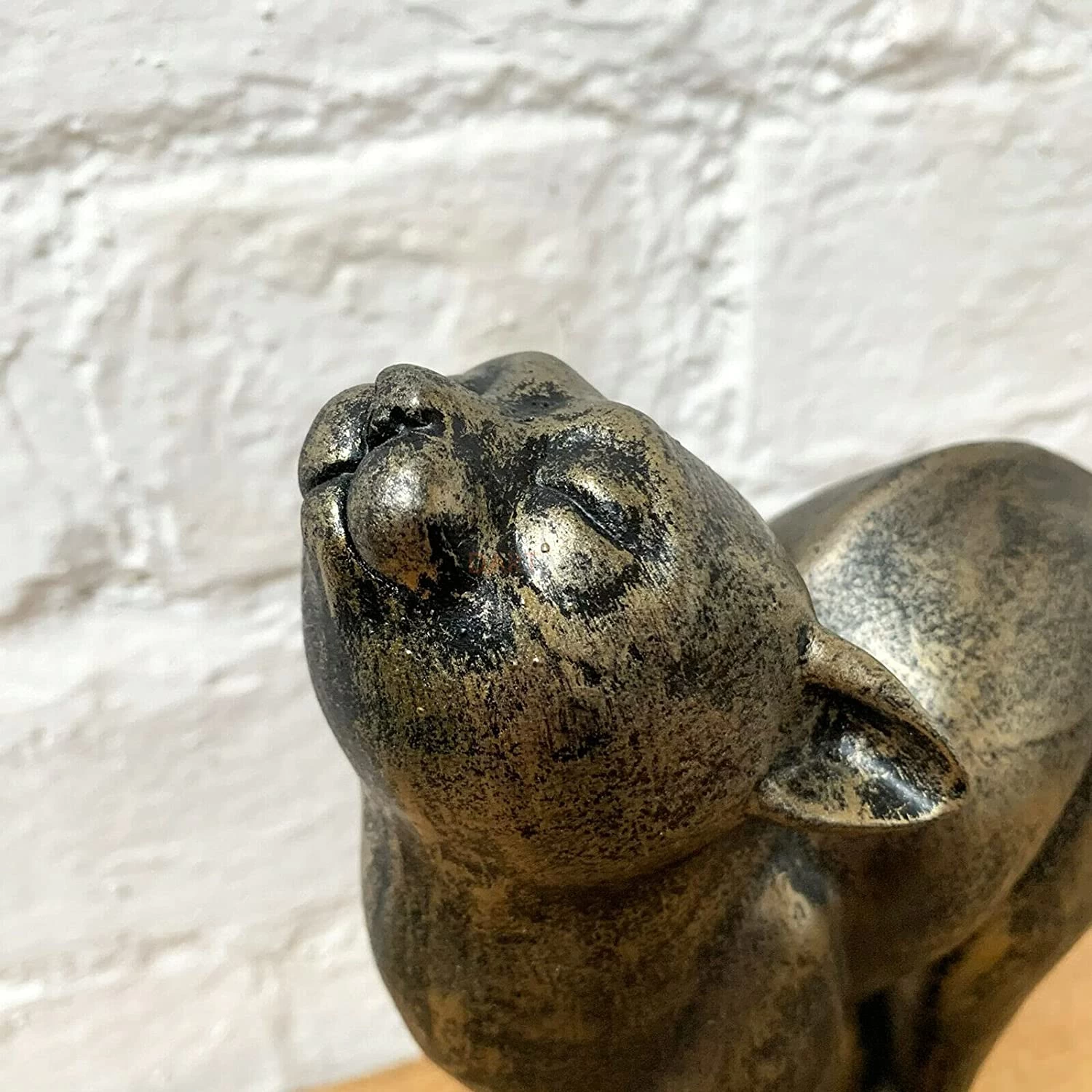 This elegant stretching cat has a bronze effect finish. It is made from high quality resin with excellent detailing around the face. The kitten stands on a rectangular stand. It can be used for indoor and outdoor use.