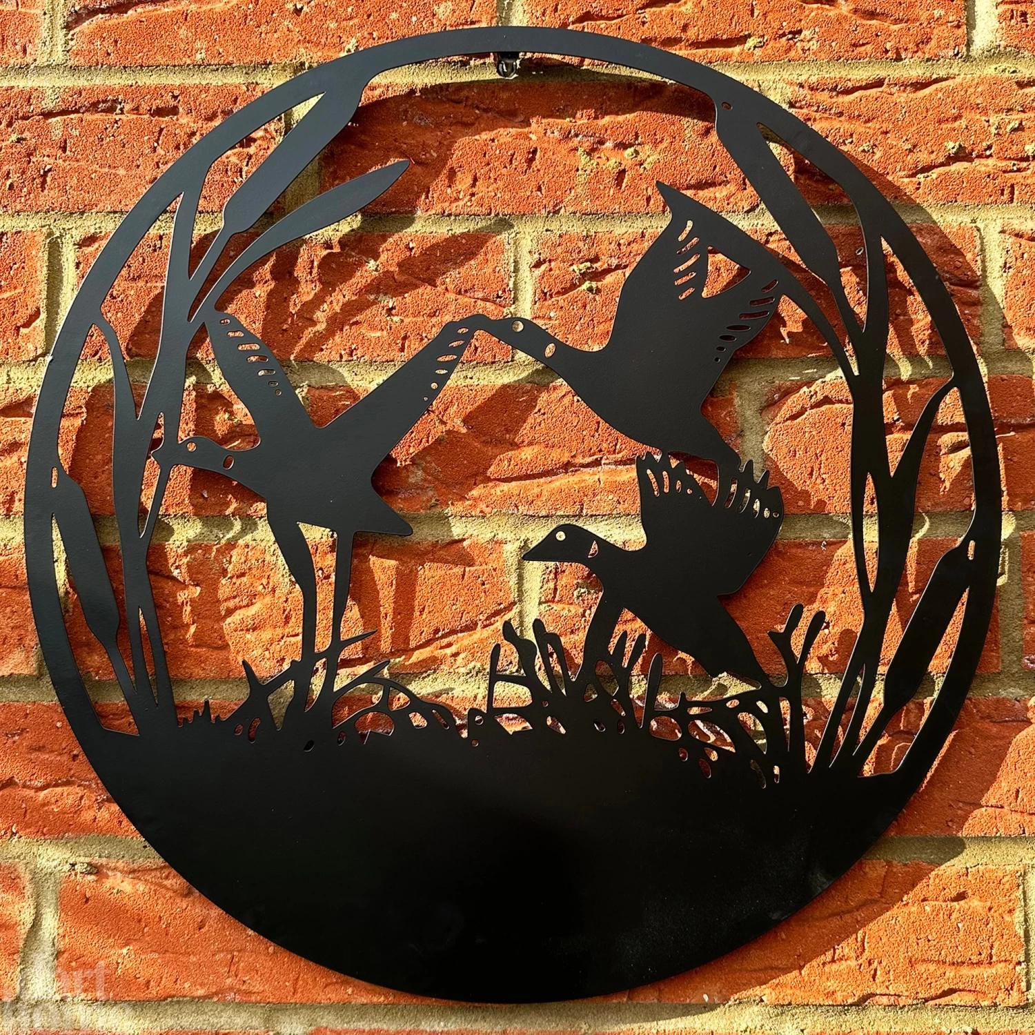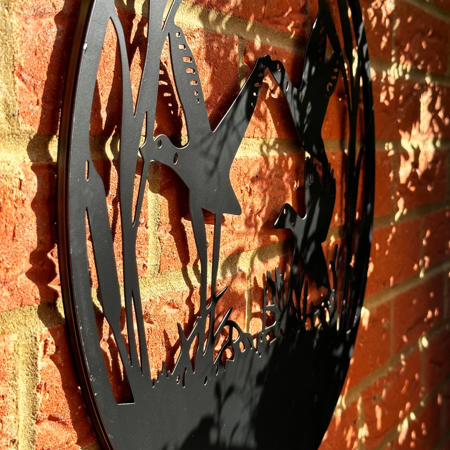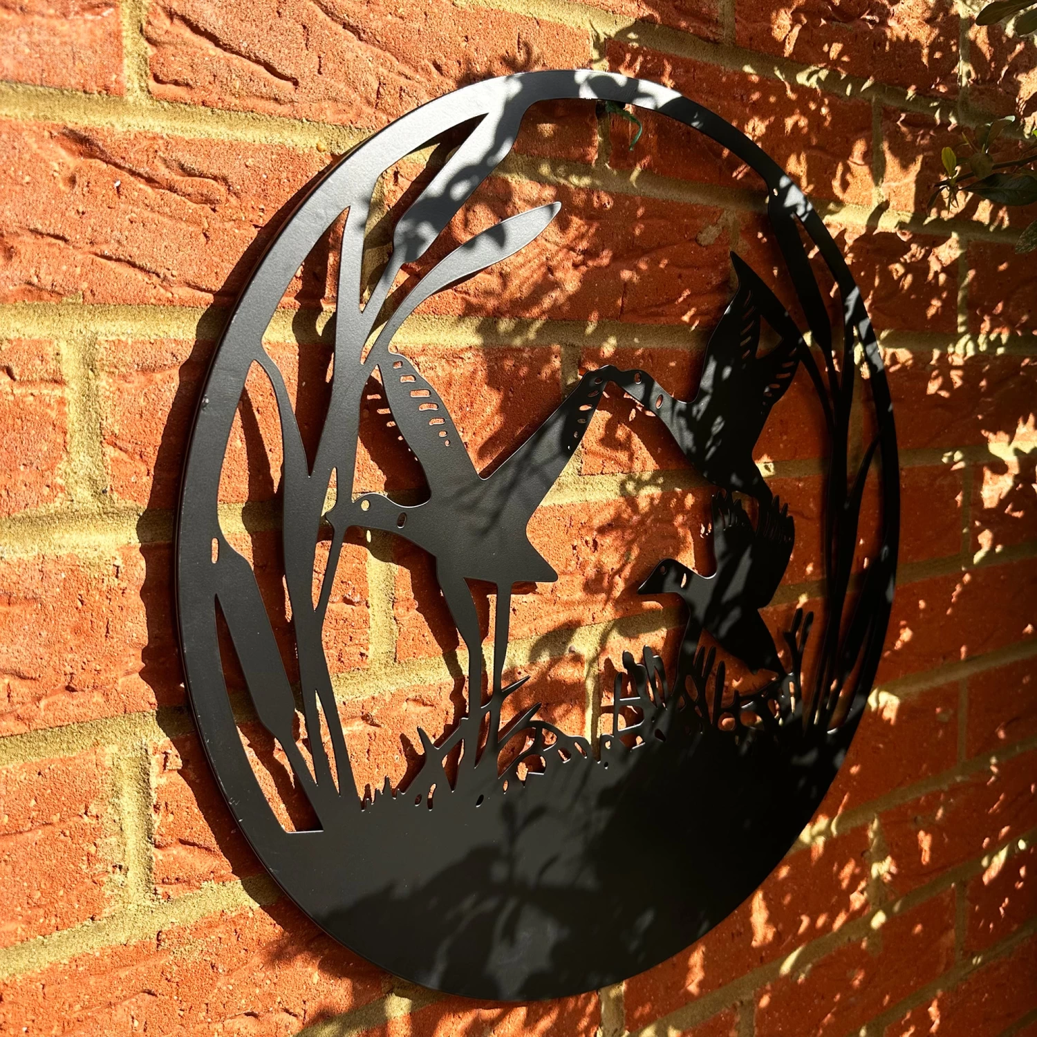 This black wall art captures three flying ducks over a lake whilst using dark coloured metals creating a gorgeous silhouette illusion. It can be used indoors and outdoors and is a wall mounted piece.