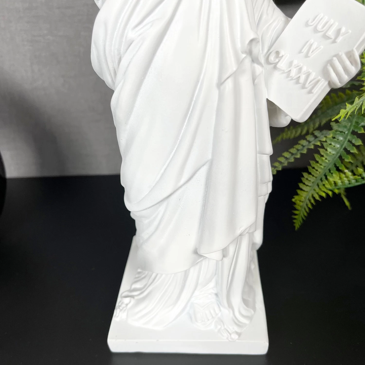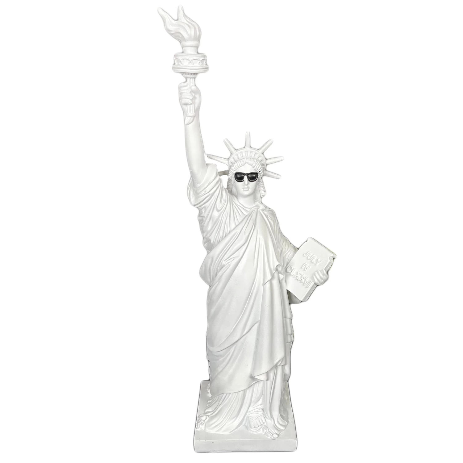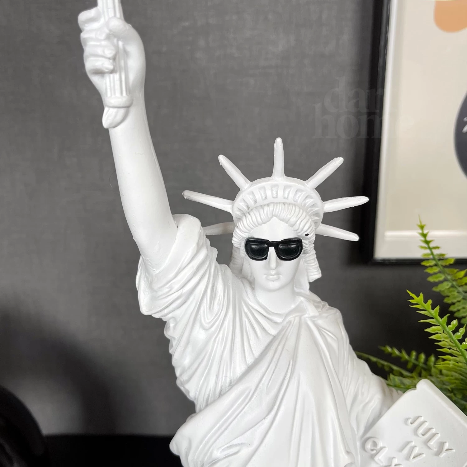 Add some playful charm into your home with our spiced up cool version of the classic Statue Of Liberty american landmark figure ornament. Our cool libby comes in matt white with smooth black glasses on. Made from resin, this modern sculpture will quickly enhance a living room with its striking design and colour.