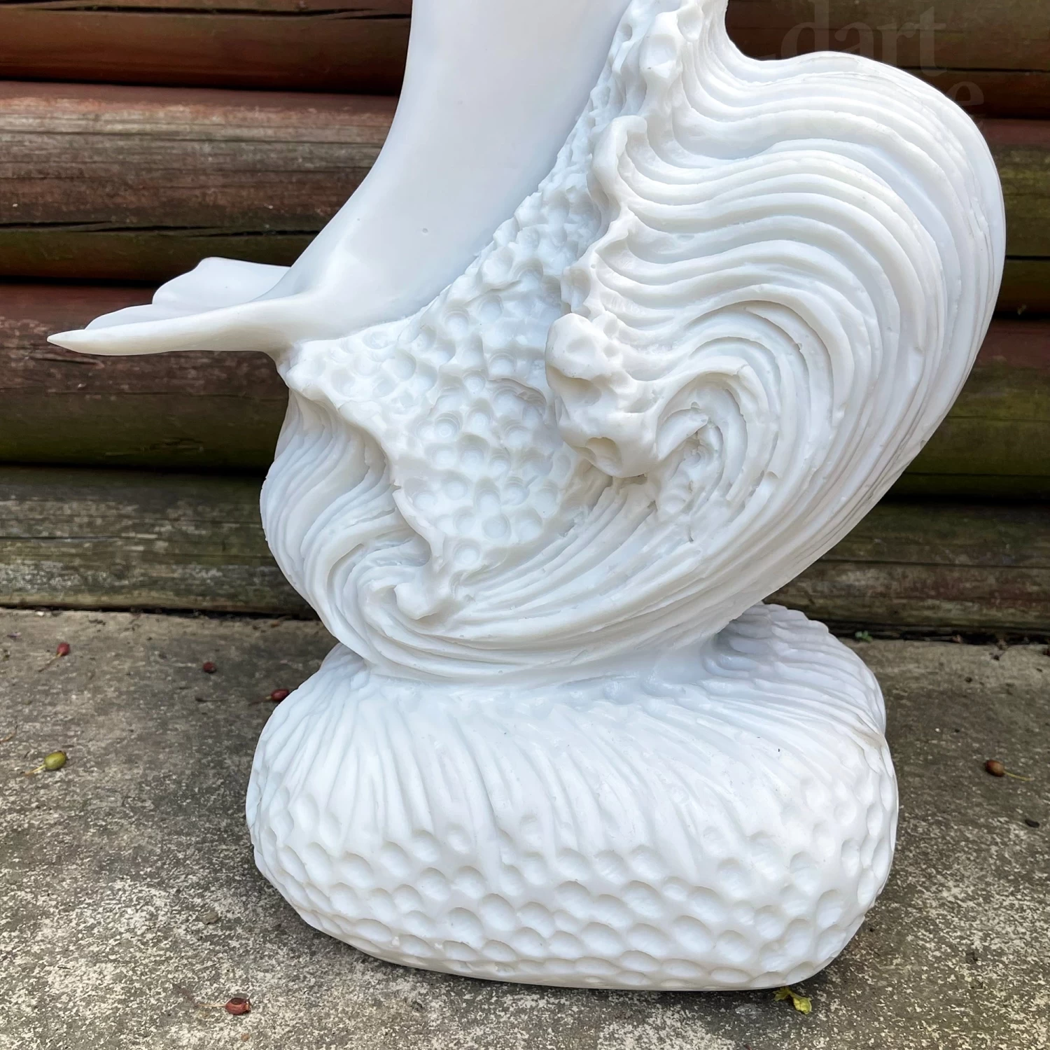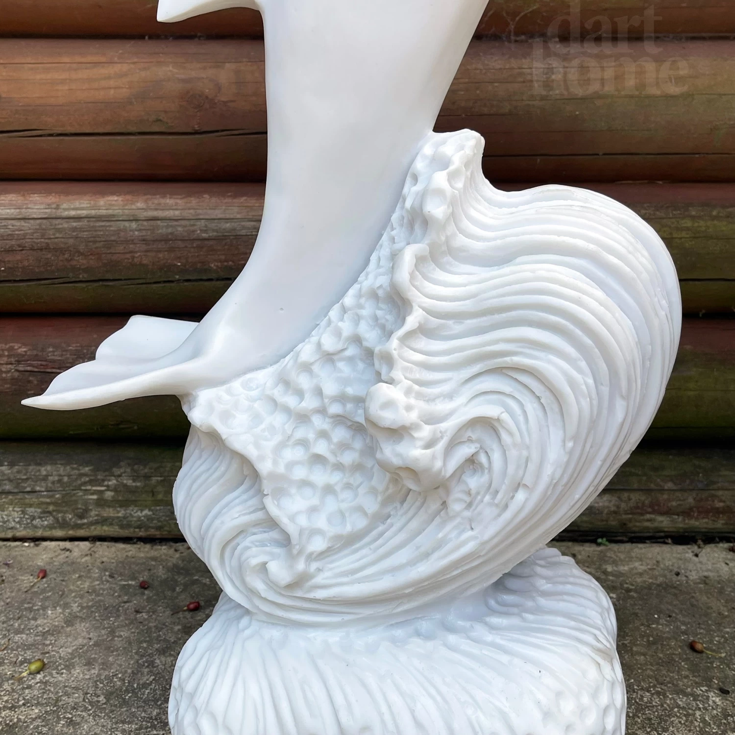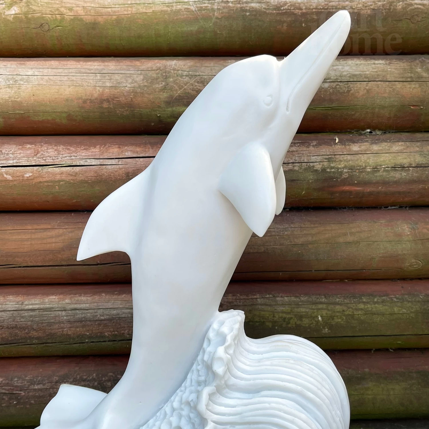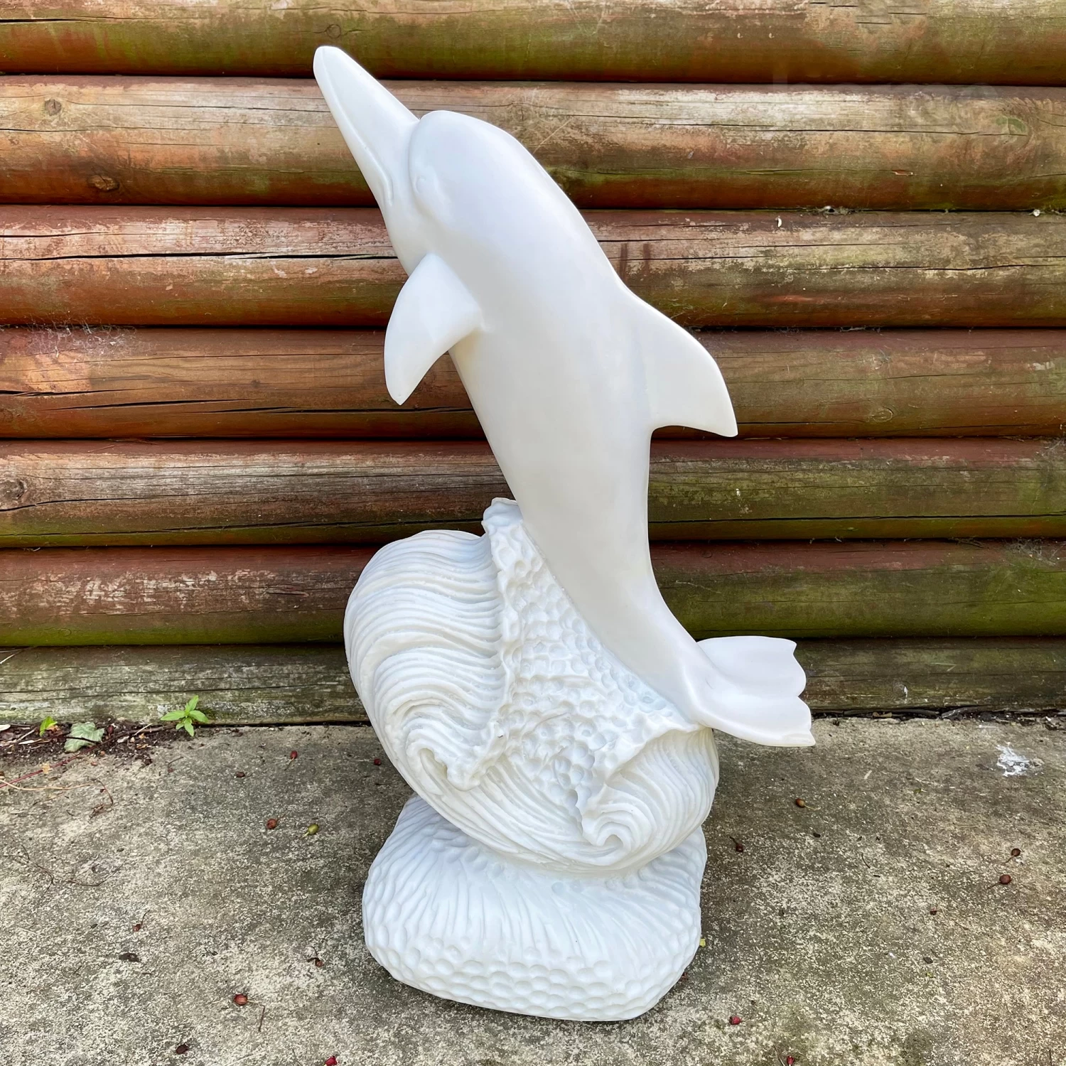 This contemporary dolphin standing on a square stand is a unique work of art with itricate and delicate detailing. It is made from crushed marble mixed with high quality resin to acheive an italian alabaster finish. This lady garden sculpture is frost-resistant and is suitable for year-round outdoor or indoor display. It will be a focal point for any garden lawn, patio or flower bed creating instant attraction wherever placed.
