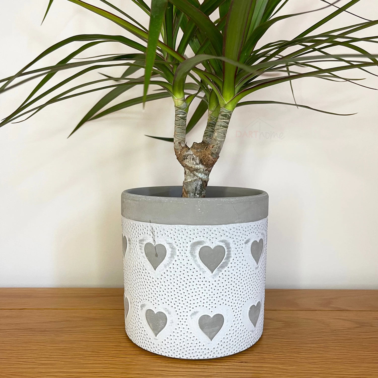 - Features: Round Plant Pots, Indoor & Outdoor, Grey Spotty, Dark Grey Embossed Love Hearts, Grey Rim