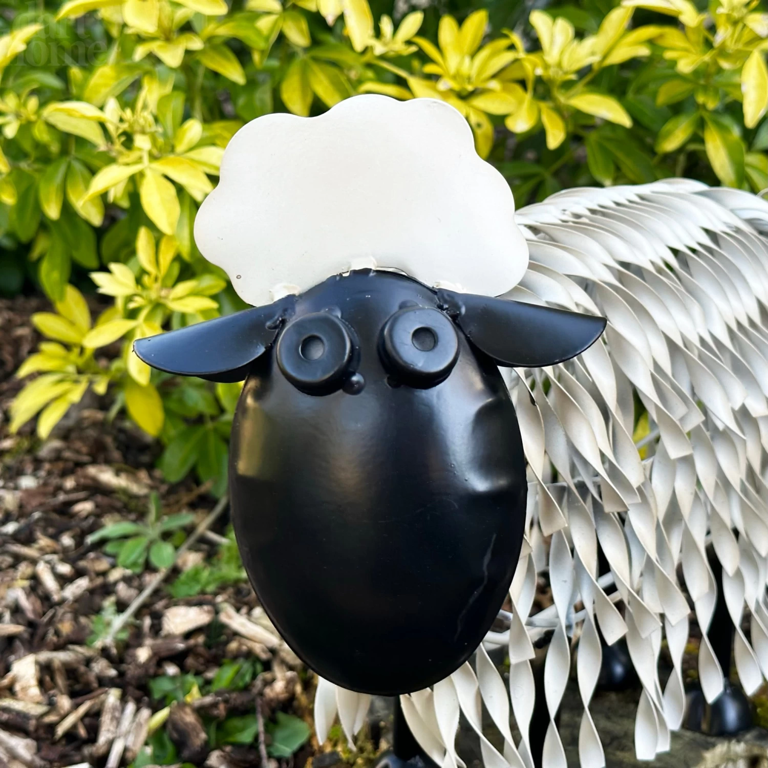 This metal hand painted sheep ornament is hand painted white on the body and black on the face and legs. It is stringed pieces of metal through the body that make this product so unique and it would look great in the garden of your home. Please note that this product may weather slightly over time.
