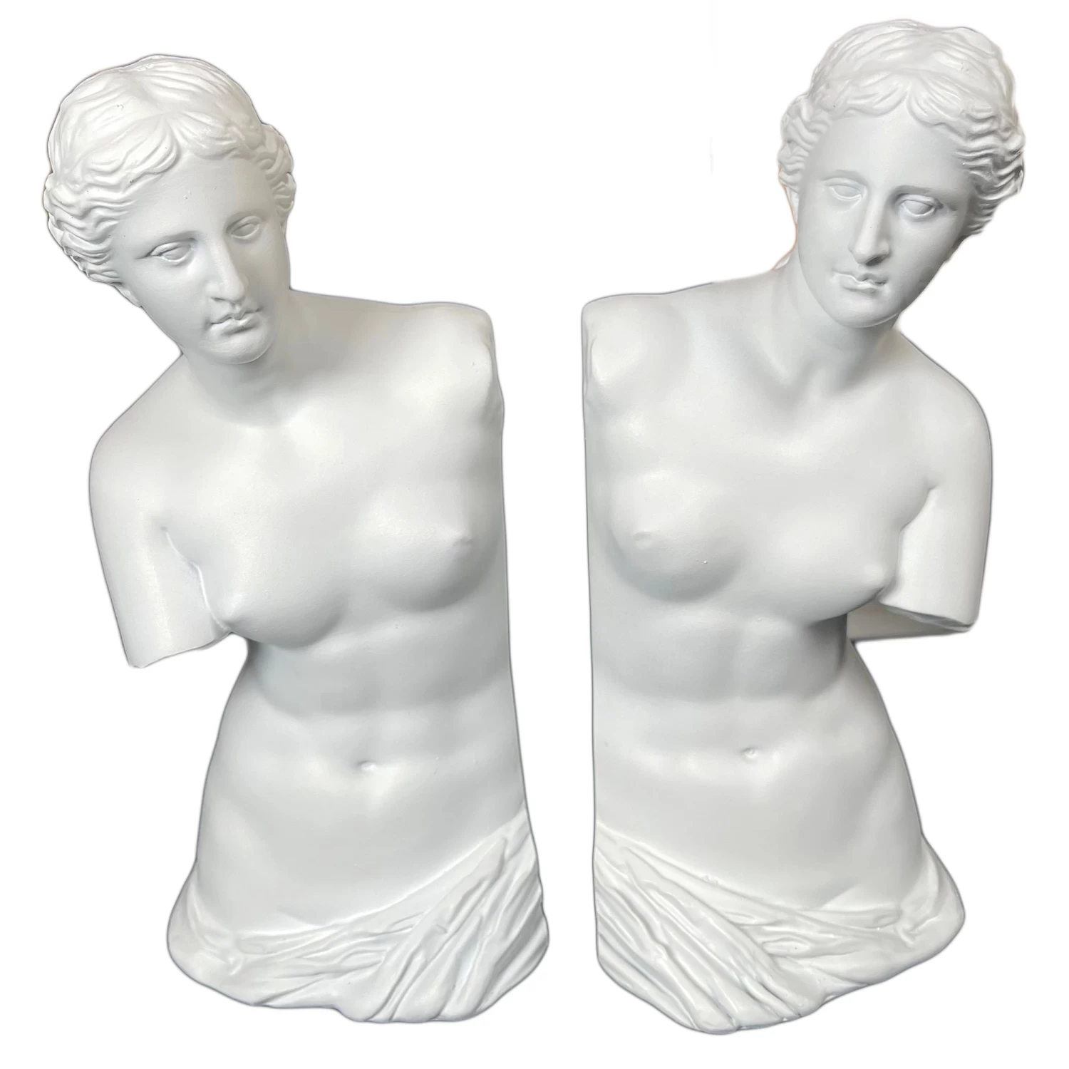 Enhance your Renaissance themed decor instantly with this set of Venus bookends. In a matt white, these heavy duty bookends are carved into the the style of the famous Roman Goddess Venus statue. These classical bookends will keep your shelf looking stylish and neat year-round. Care instructions: clean with damp cloth.