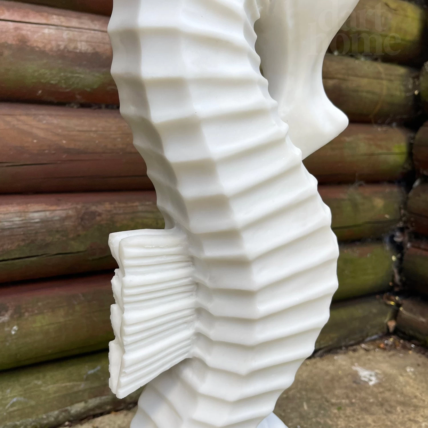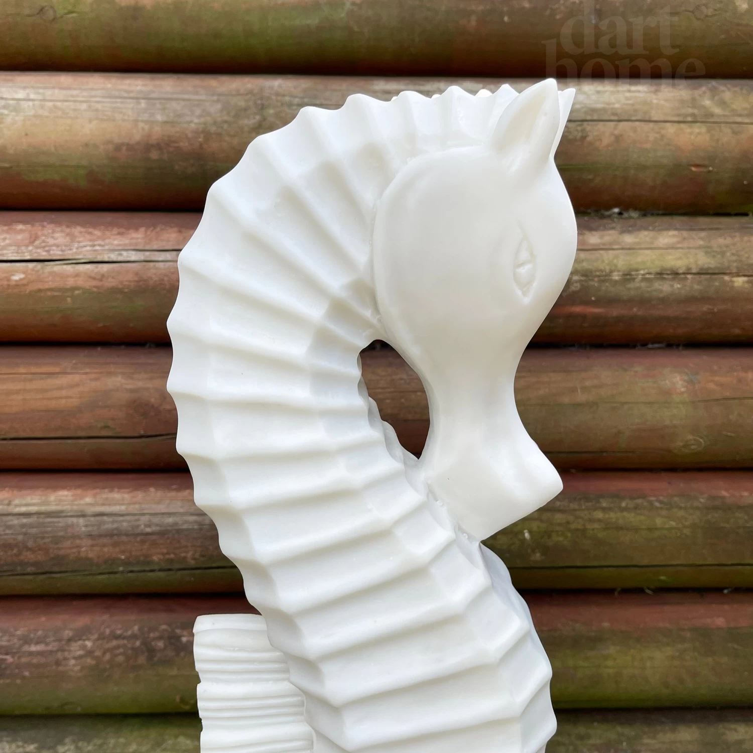 This contemporary standing seahorse rested on a square stand. It is made from crushed marble mixed with high quality resin to acheive an italian alabaster finish. This lady garden sculpture is frost-resistant and is suitable for year-round outdoor or indoor display. It will be a focal point for any garden lawn, patio or flower bed creating instant attraction wherever placed.