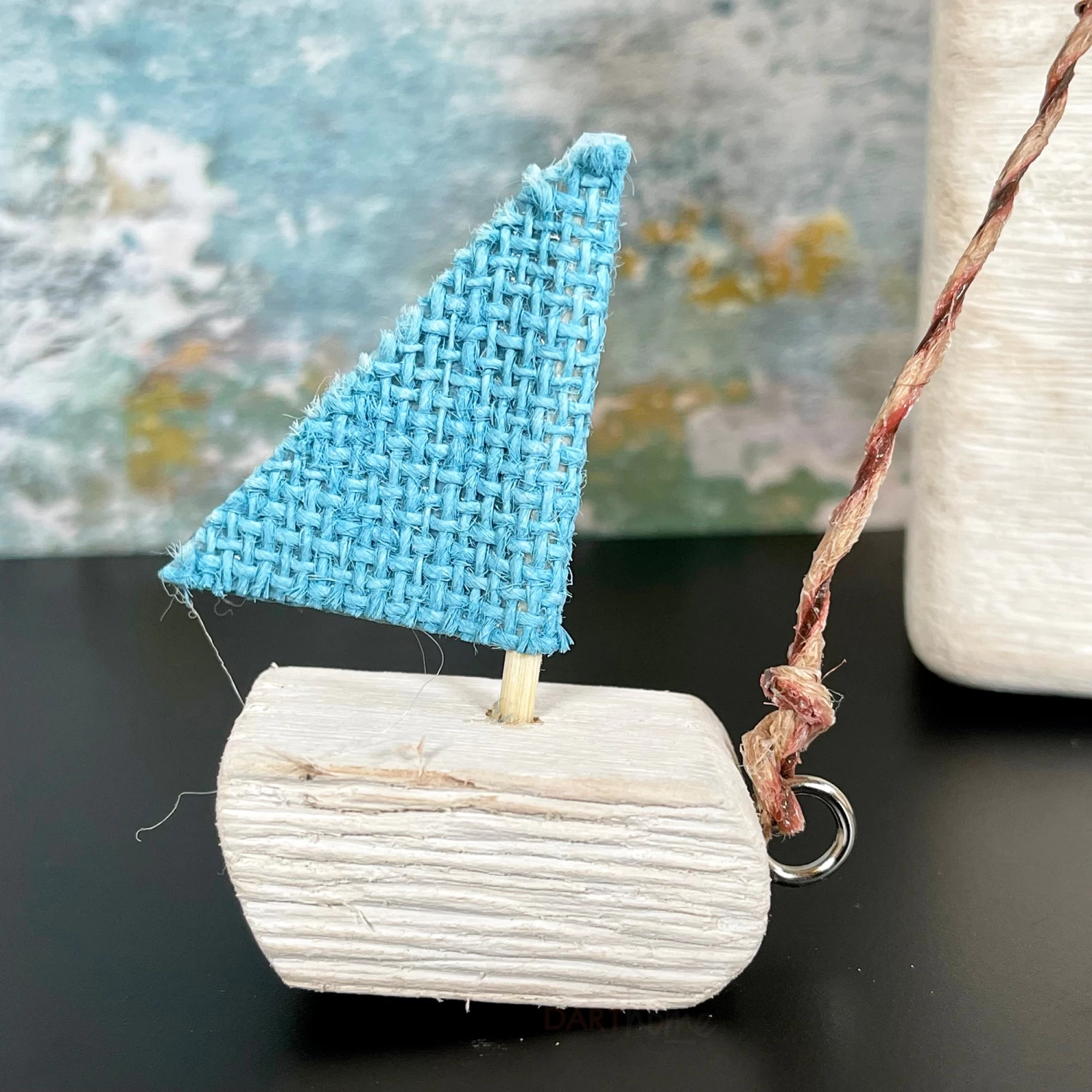 Features: Harboured Boat On String, Beach Harbourside House, Wooden Base, Small Bamboo Ladder, Blue House, White Boat, Freestanding