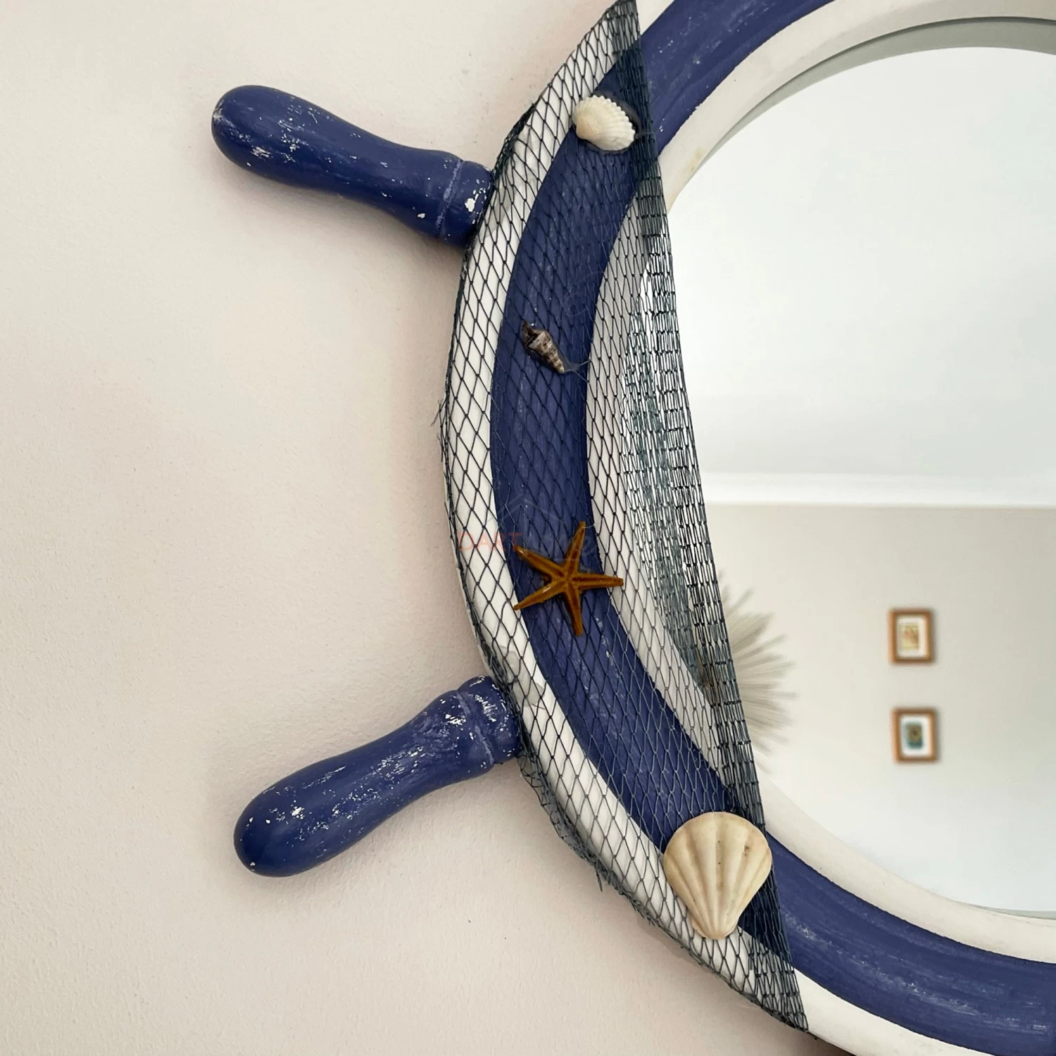 - Features: Vintage Wooden Frame, Seagull, Fish Net, Blue & White Frame, White Sail Boat, White Shell, Wall Mounted, Round Mirror
